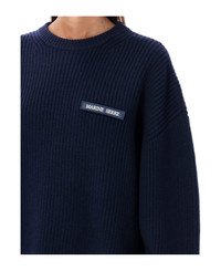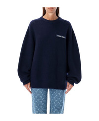 Ms Half Cardigan Knit Crewneck Sweater