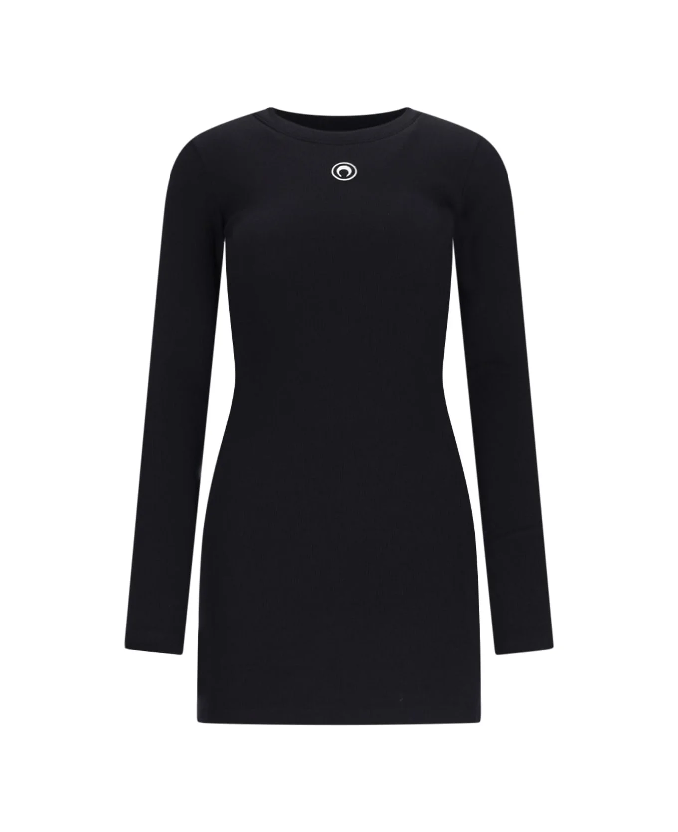 Moon Logo Ribbed Jersey Mini Crewneck Dress Black