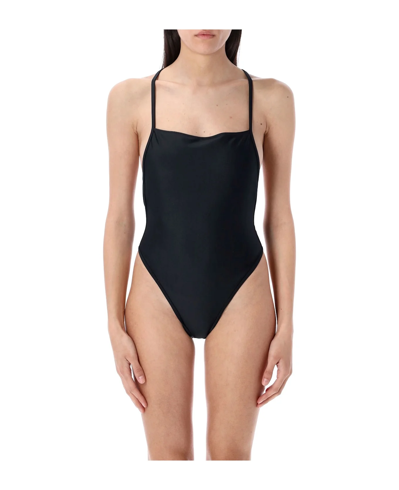 One-piece Swimwear By Marine Serre. Featuring: Square Neckline Thin Straps Crossed At Back Moon Embroidery At Back Model Is 1,70 M And Wears Size S Composition: 78% polyamide, 22% elastane Made in: Italy Color: BLACK Model number: WSW012ACJER0061BK99