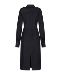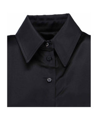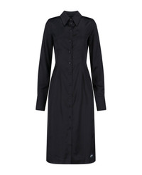 Marine Serre satin midi dress in black viscose with classic collar, button closure, side logo patch, maxi cuffs, button cuffs, straight hem. Composition: 100% Viscose Made in: Romania Color: Black Size and fit: - Vestibilita regolare Model number: WDR421ACWOV0056BK99