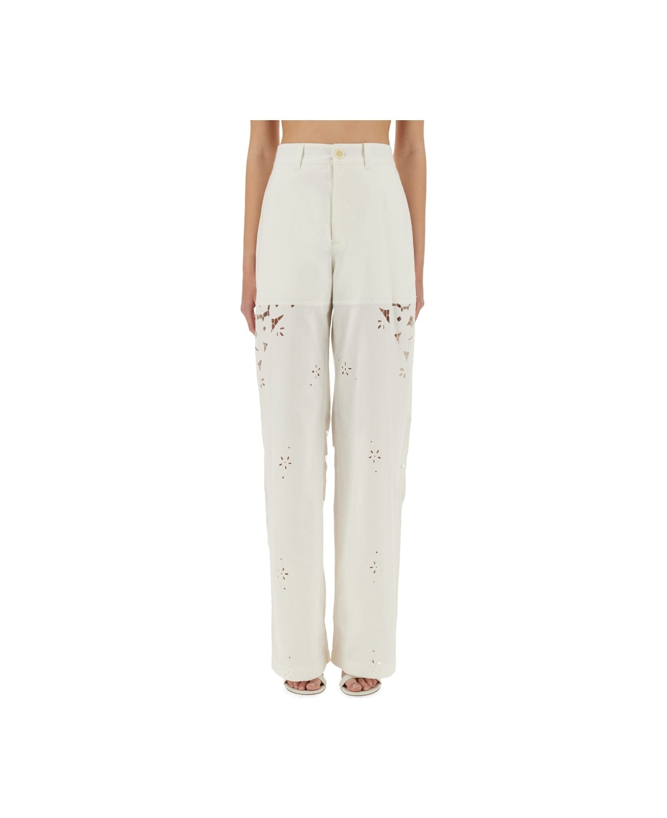 - STRAIGHT FIT - BASEMATERIAL: 100% COTTON - MADE IN ROMANIA - THE GARMENT WAS MADE THROUGH AN UPCYCLING PROCESS. EACH PIECE IS UNIQUE, WITH POSSIBLE VARIATIONS. - THE MODEL IS 180 CM TALL AND WEARS SIZE S BASEMATERIAL: 100% COTTON Made in: Romania Color: WHITE Model number: UPA056AUWOV0007WH10
