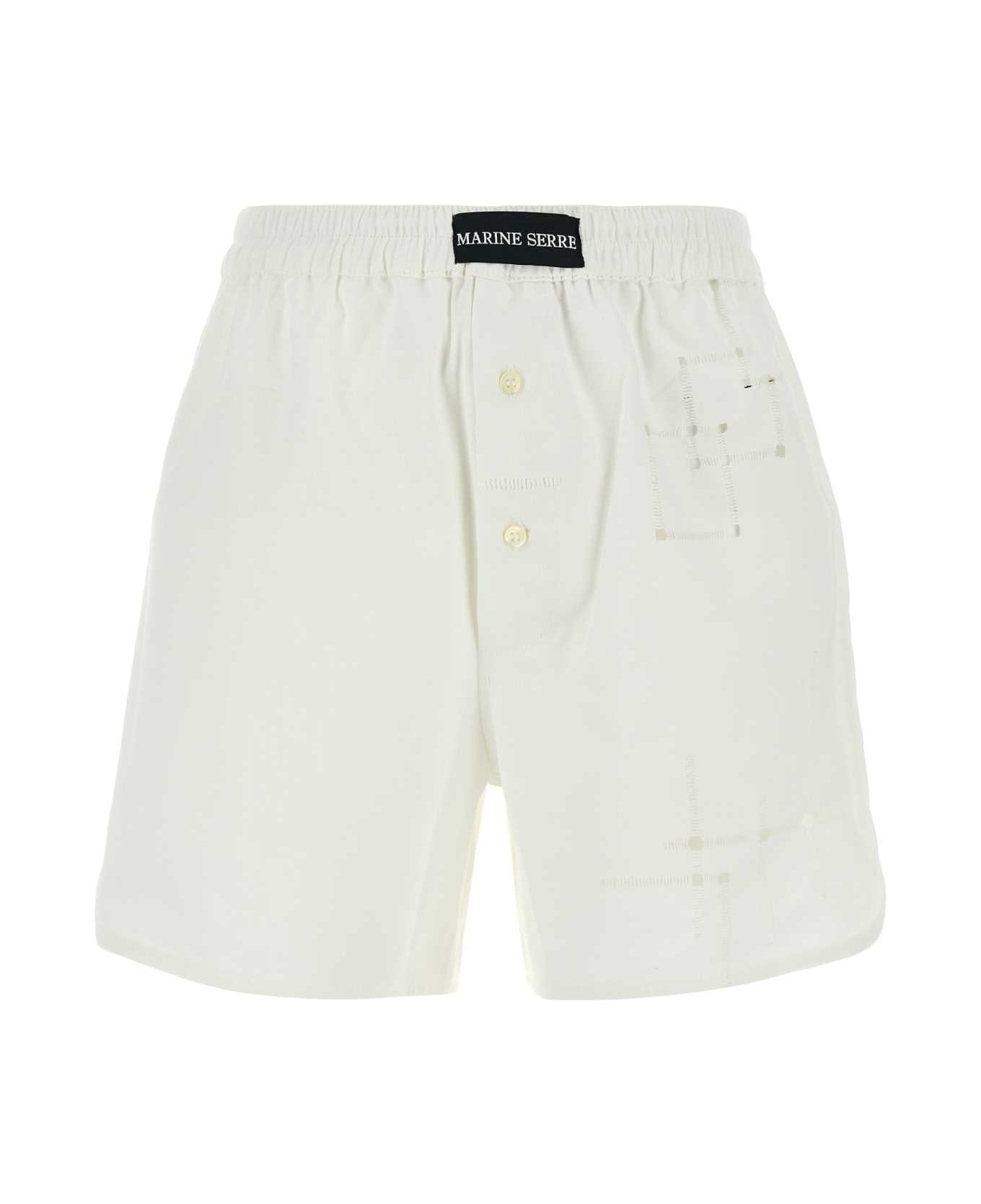 White Cotton Shorts from Marine Serre Made in: Romania Color: WHITE Model number: USH002AUWOV0007WH10