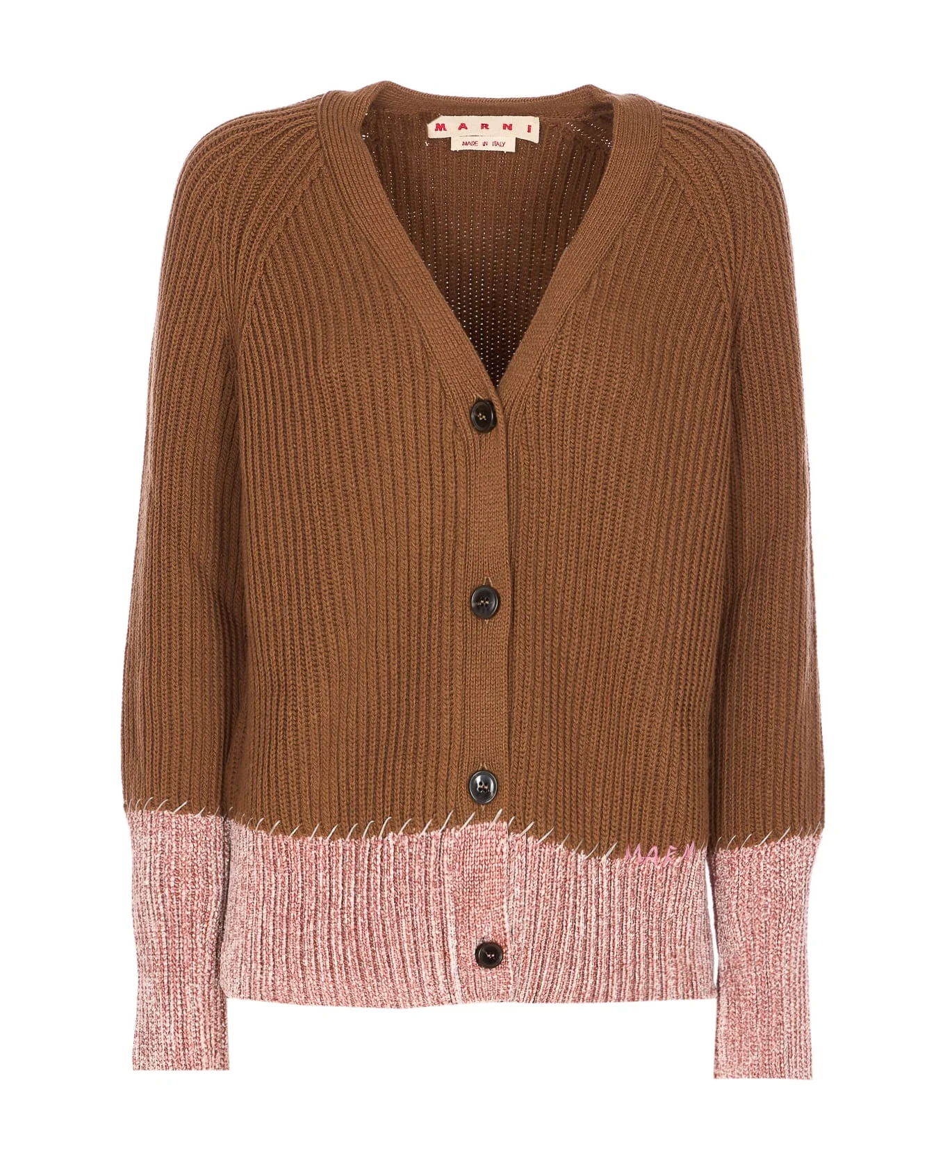 BROWN WOOL COLOR-BLOCK CARDIGAN