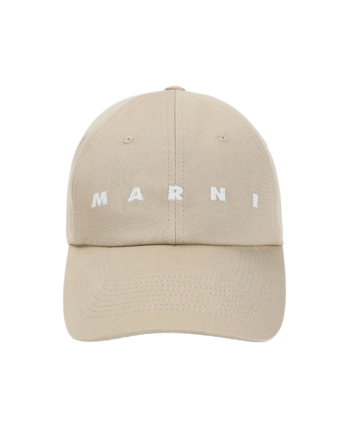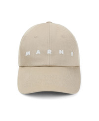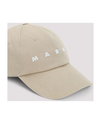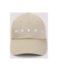 Marni Beige Cotton Hat. Crafted from beige cotton canvas, white contrasting embroidered logo on the front, 6 panels construction, tonal eyelets, graphic embroidery at the back, adjustable strap with silver-toned buckle on the back. Made in: Italy Color: Cement Model number: CLMC0091S2UTC54100W25
