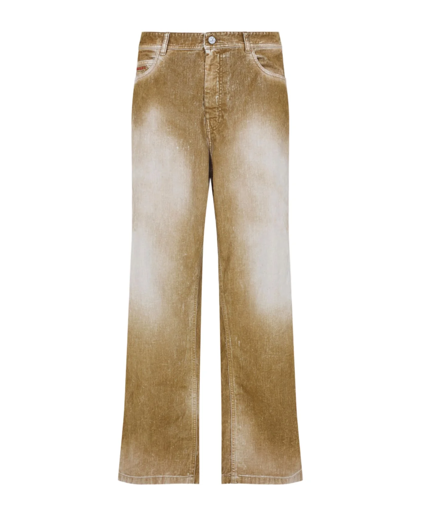 BROWN FLOCKED DENIM TROUSERS WITH BACK ADJUSTER