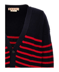 BLUE WOOL AND COTTON STRIPED FISHERMAN CARDIGAN