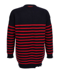 Destroyed Effect Striped Cardigan