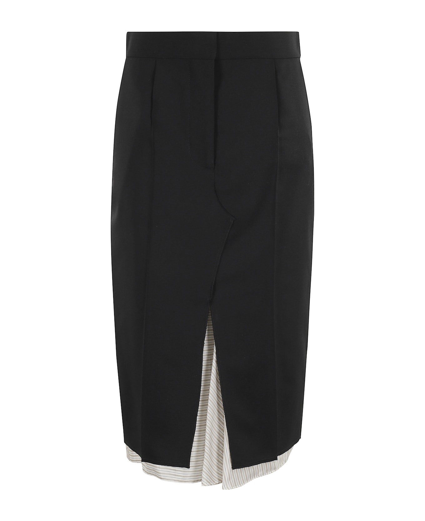 BLACK WOOL MIDI SKIRT WITH VISIBLE LINING