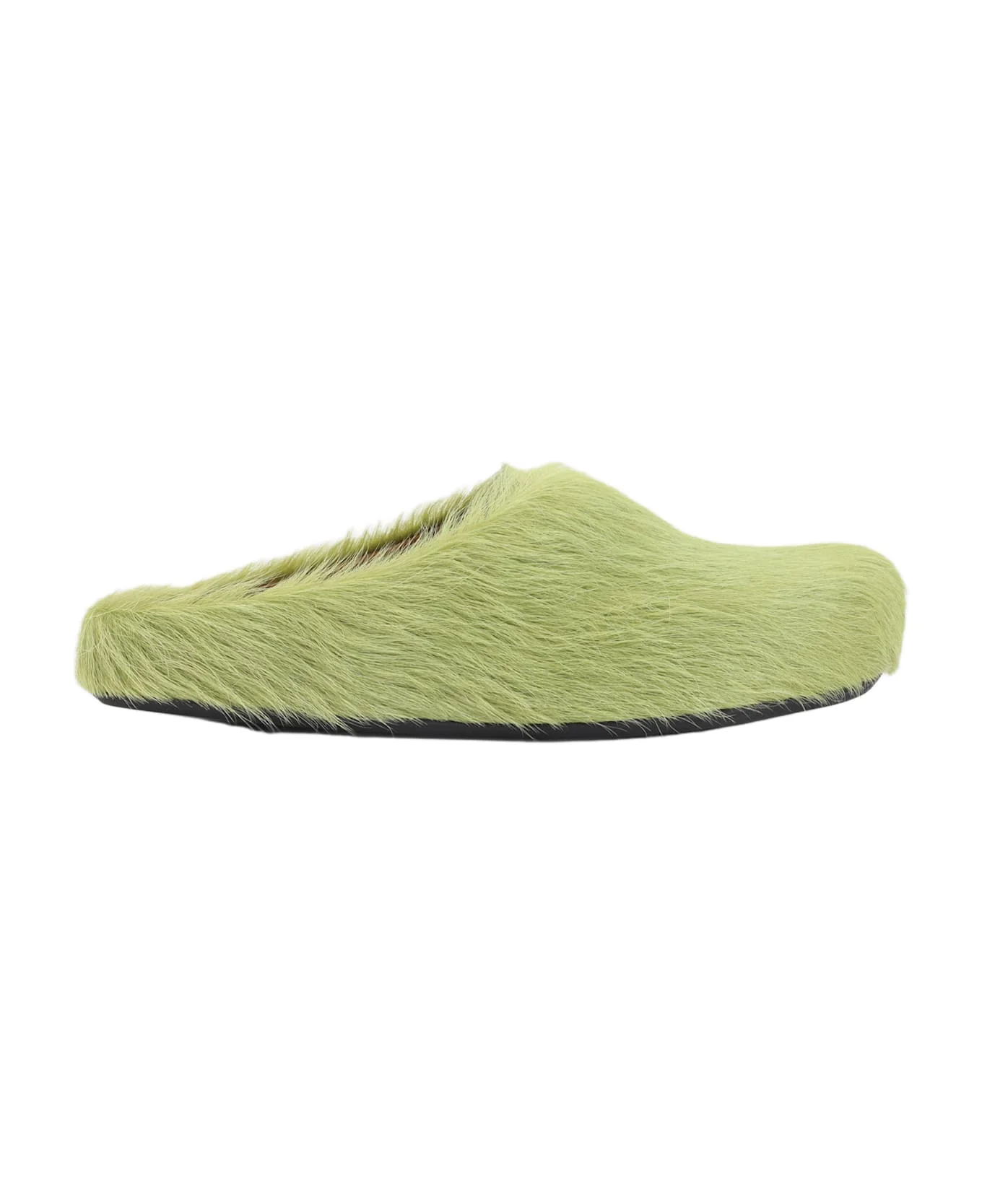 Marni Lime Calf Hair Fussbett Mules. Fluffy leather upper, round toeline, logoed leather insole and rubber sole, slip-on style. Made in: Italy Color: Lime Model number: SBMS004601P412200V37