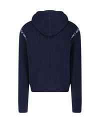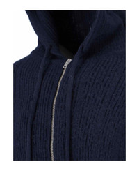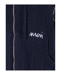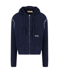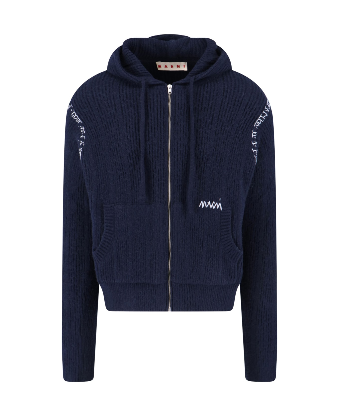 Marni knitted sweater in navy blue wool and cashmere blend, knitted, drawstring hood, zip closures, contrast stitching design, side logo, two side pockets, ribbed trim, and straight hem. Composition: 90% Wool, 10% Cashmere Made in: Romania Color: Blue Size and fit: - Vestibilita regolare Model number: CDMG0171A0UFZ35100B90