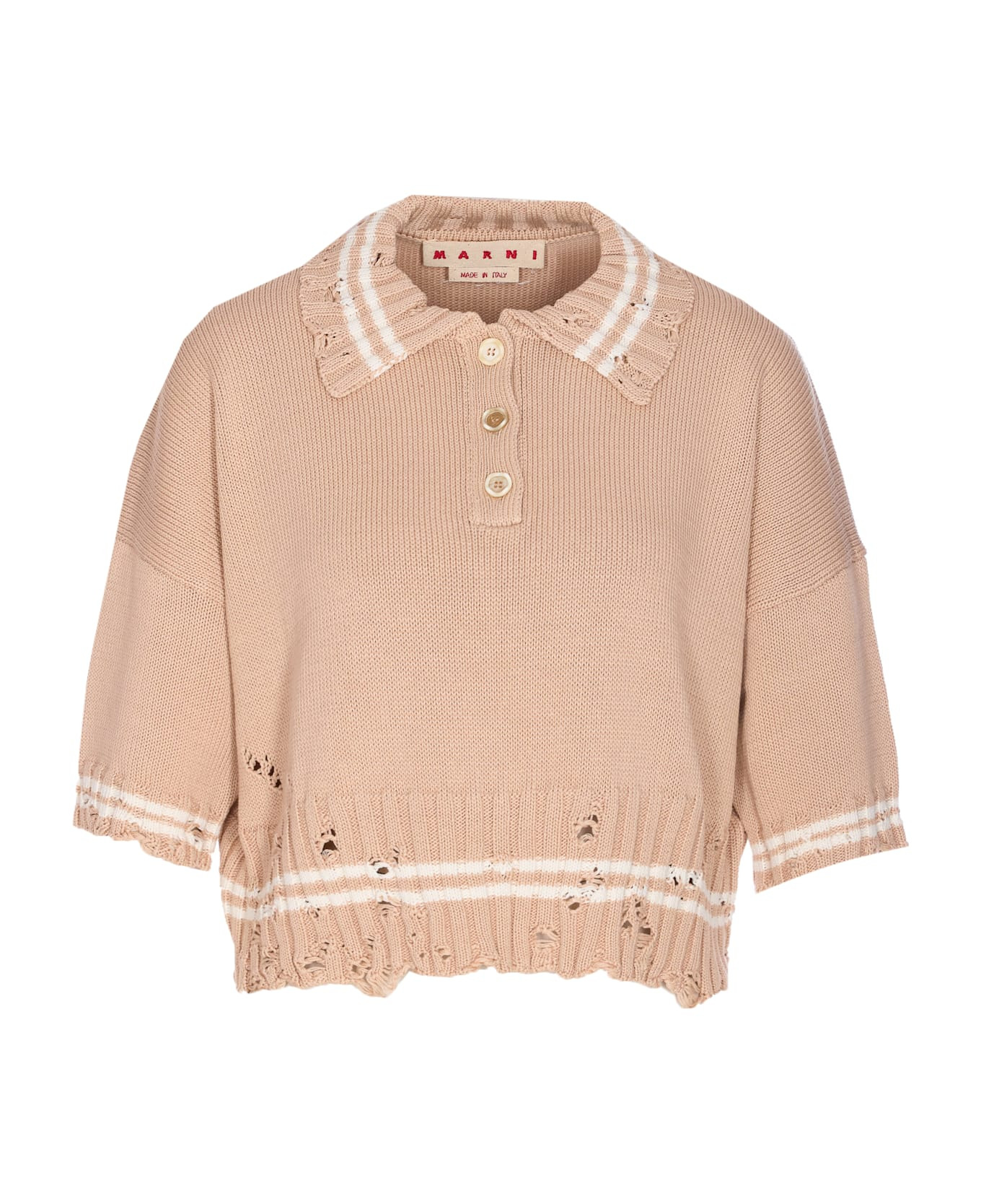 Marni pink distressed polo, regular collar, buttons closure, short sleeves, crop model Composition: 100% Cotton Made in: Italy Color: Pink Size and fit: - EU SIZE (IT) Model number: POMD0045EQUFC65200W35