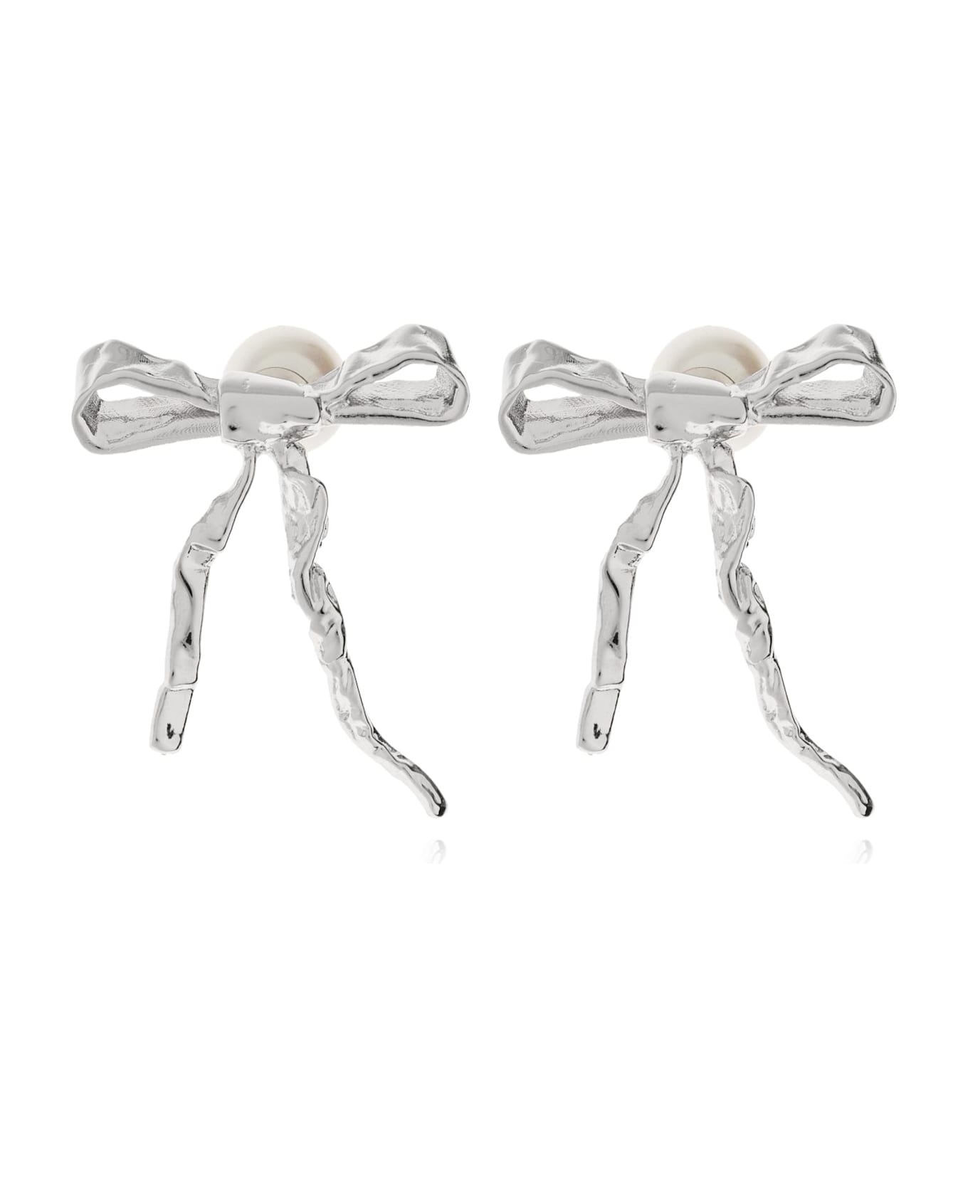 Evoking a sense of sculptural artistry, the Bow Earrings by Marni showcase an exceptional interplay of modern elegance and avant-garde design. Fashioned from lustrous metal with the dominant hue of refined silver, these earrings feature an inventive, three-dimensional bow motif gracefully rendered with fluid, swirling loops and distinctly elongated ribbon ends. At the heart of each bow rests a striking, pearl-like embellishment, exuding an unmistakable aura of luxury. The surface of the silver bow is intricately rippled and undulating, adding a dynamic, almost ethereal quality, while each design element is thoughtfully highlighted for impeccable sophistication. Crafted from premium acrylic and brass, these statement earrings distinguish themselves as a testament to Marni's dedication to bold, eclectic refinement. Why choose this product? Original sculptural design by renowned Italian fashion house Marni Exquisite silver finish for timeless elegance and versatility Unique pearl-inspired centerpiece accentuates luxury Expert craftsmanship and meticulous attention to detail Composition: Brass Brass Acrylic Brass Acrylic Brass Acrylic Brass Acrylic Brass Acrylic Acrylic Made in: Italy Color: SILVER Model number: M2001ORMV0594A0