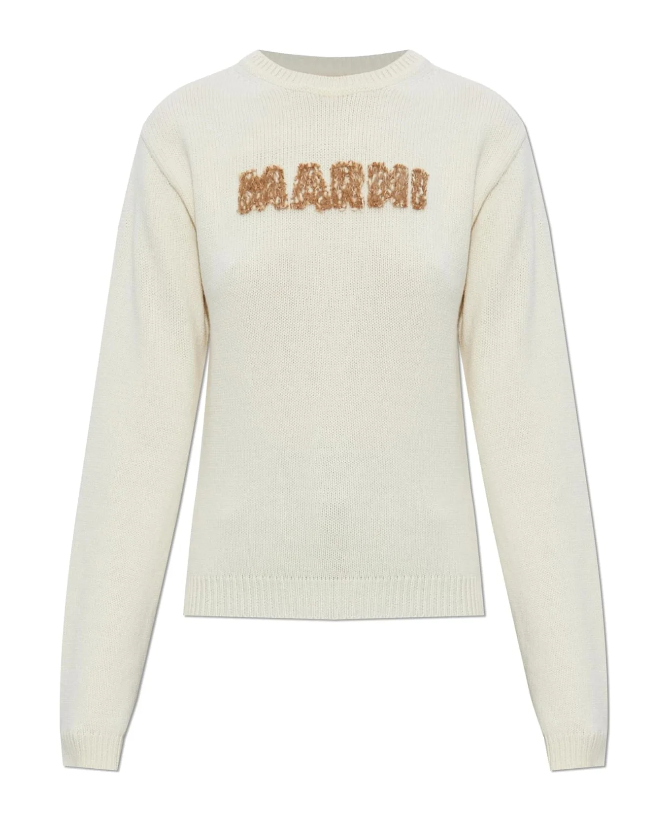 CREAM WOOL SWEATER WITH LASER-CUT MARNI LOGO