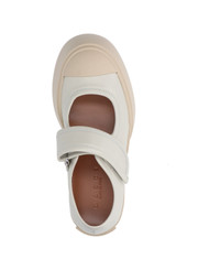 Marni Mary Jane sneakers in beige calf leather with round toe, top cut-out detail, adjustable strap closure, back tab logo detail, rubber platform sole. Composition: 100% Calf Leather Made in: Italy Color: Gray Size and fit: - altezza 4.5 cm Model number: SNZW003120P722600N01
