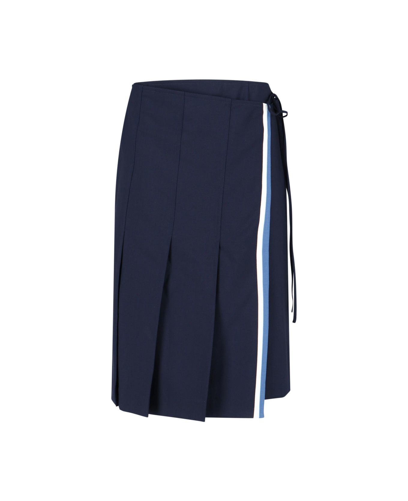 Marni midi wrap skirt in navy blue wool, high waist, lace closure, pleated design on the front, two-tone stripe detail on the side, straight hem. Composition: 100% Virgin Wool Made in: Italy Color: Blue Size and fit: - Vestibilita regolare Model number: GOMA0741Q0TW83900B99