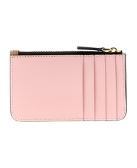 PINK LIGHT BROWN AND DARK BROWN LEATHER ZIP CARDHOLDER