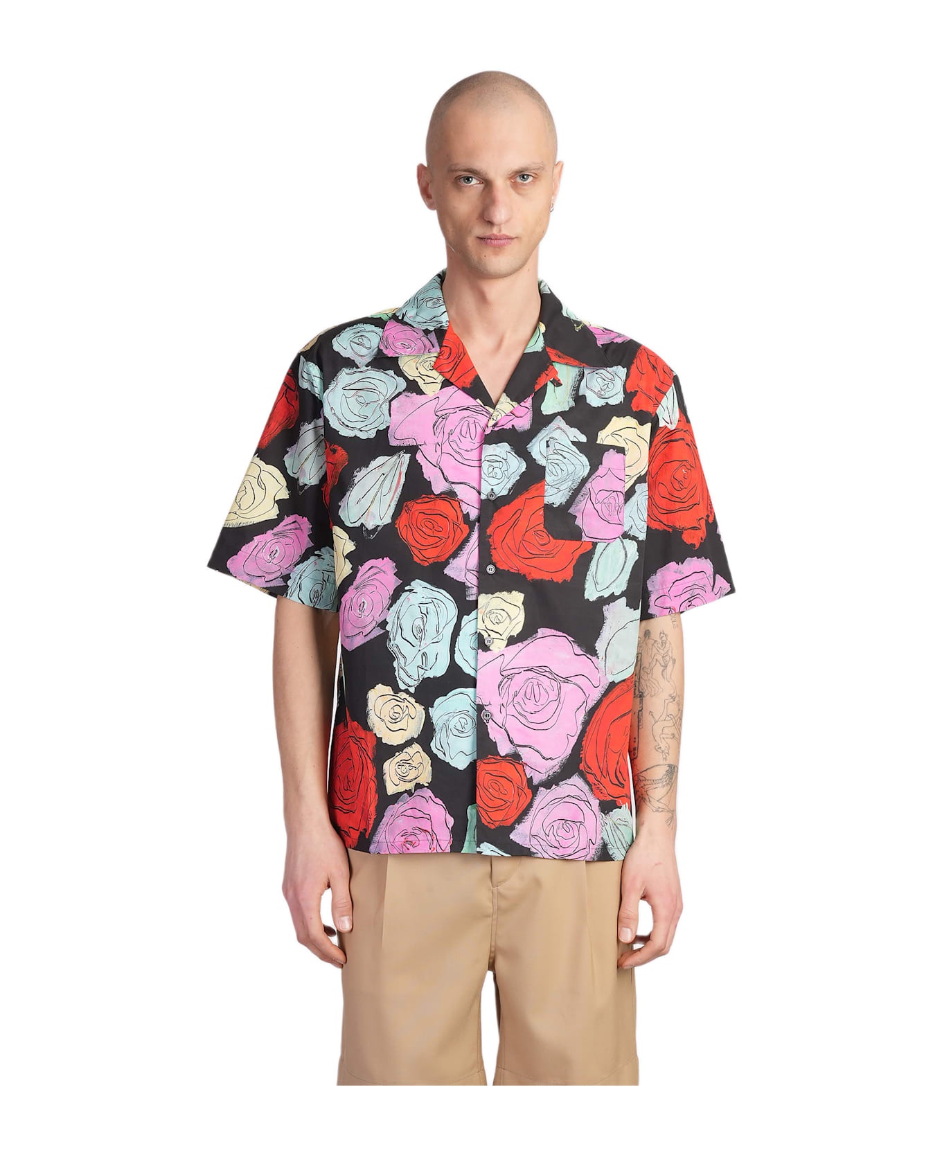 BLACK POPLIN BOWLING SHIRT WITH ORION PRINT