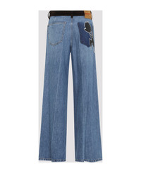 Marni Deep Blue Cotton Washed Bull Denim 5-Pocket Jeans. Pure deep blue cotton jeans, front concealing zipped fastening, front buttoned fastening, contrasting dark brown detail on the waist, contrasting dark brown belt loops, five pockets design, back flower design, wide leg, straight hem, overwashed design. Made in: Italy Color: Deep Blue Model number: PAJD0514QSUSCY4400B96