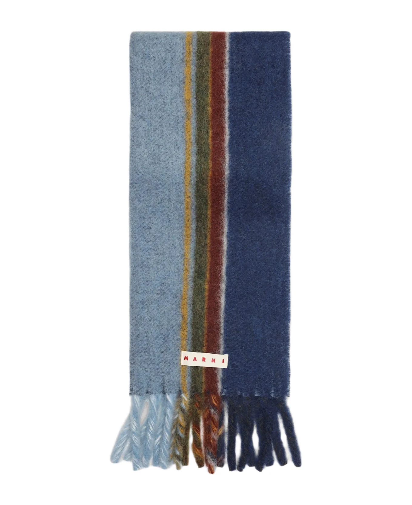 Marni Iris Blue Wool Scarf. Iris Blue Wool, striped pattern, logo labe, fringed hem. Made in: Italy Color: Iris Blue Size and fit: - 24cm X 160cm Model number: SCZC0076Y0UAW051STB50
