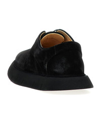 'Intagliata' reverse leather derby shoes with bag structure, rounded toe, laces closure, microrubber sole. Composition: 100% calfskin leather (Bos Taurus) Made in: Italy Color: Black Size and fit: - EU MEN Model number: MM4645P024666