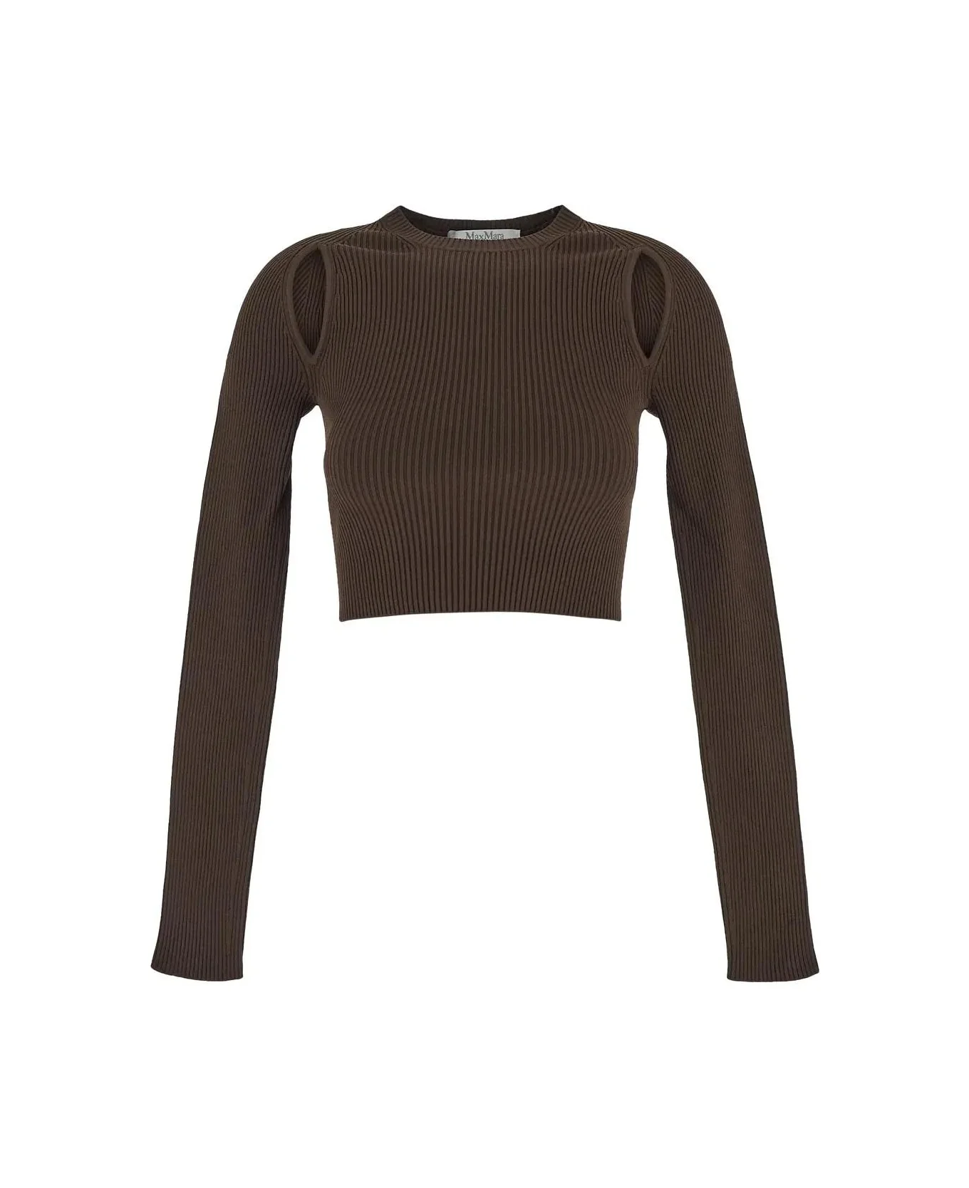 Max Mara 'Ala1234' ribbed viscose crepe cropped jumper featuring a crew neck, long sleeves Composition: fabric 75% Viscose; 25% Polyester Made in: Italy Color: BROWN Model number: 2511361173600163010