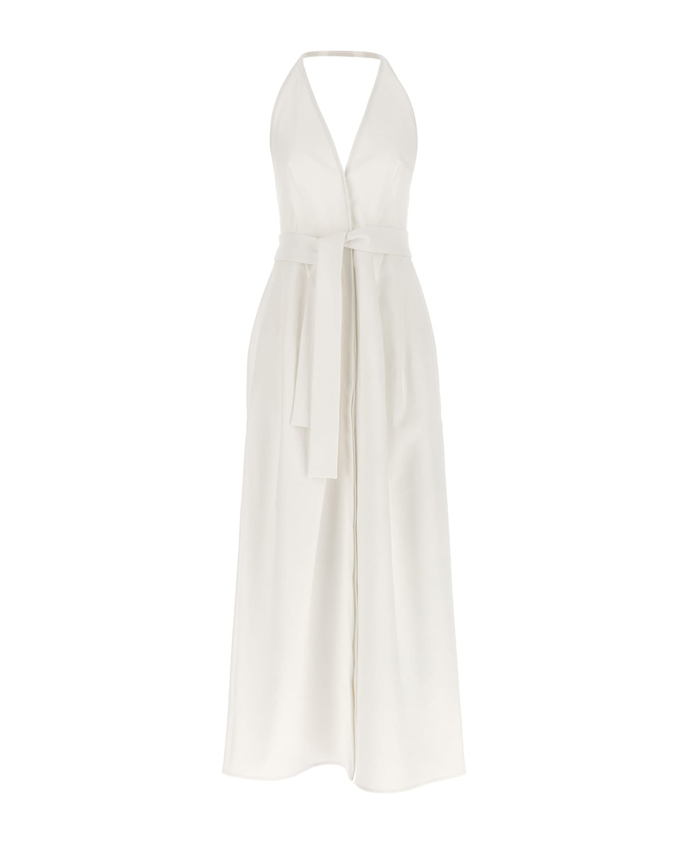 Long 'Ancona1234' dress in stretch cotton gabardine with American neckline with bare back, sleeveless, front button closure, wide skirt with front and back pleats, pockets. Composition: 94% cotton 6% elastane Made in: Italy Color: White Size and fit: - true to size fit Model number: 2511221493600001
