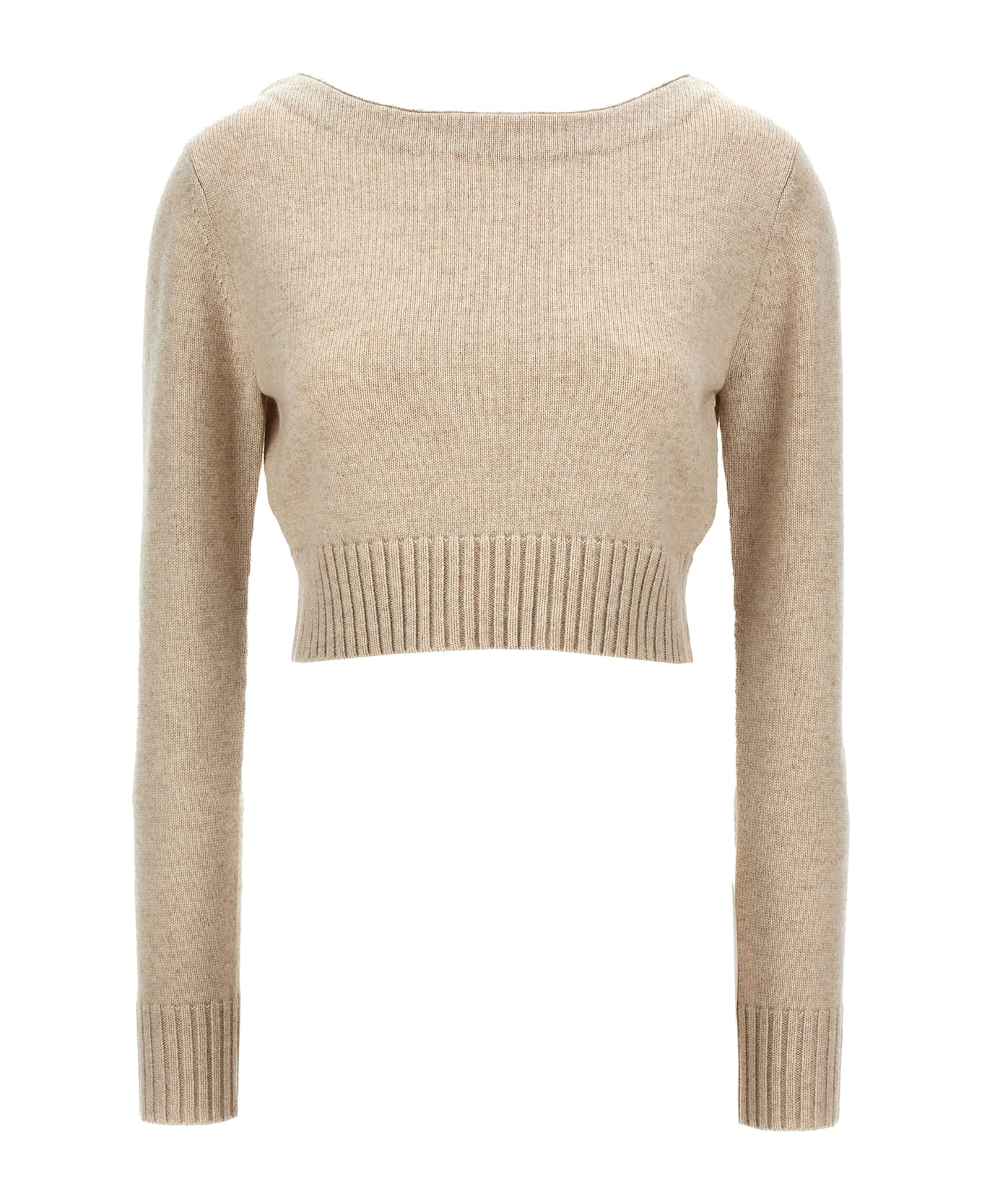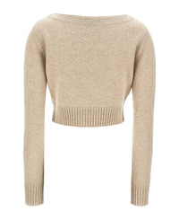Angri' cropped sweater in wool and cashmere blend with boat neck, long cuffed sleeves. Composition: 70% wool 30% cachemire Made in: China Color: Beige Size and fit: - true to size fit Model number: ANGRI002
