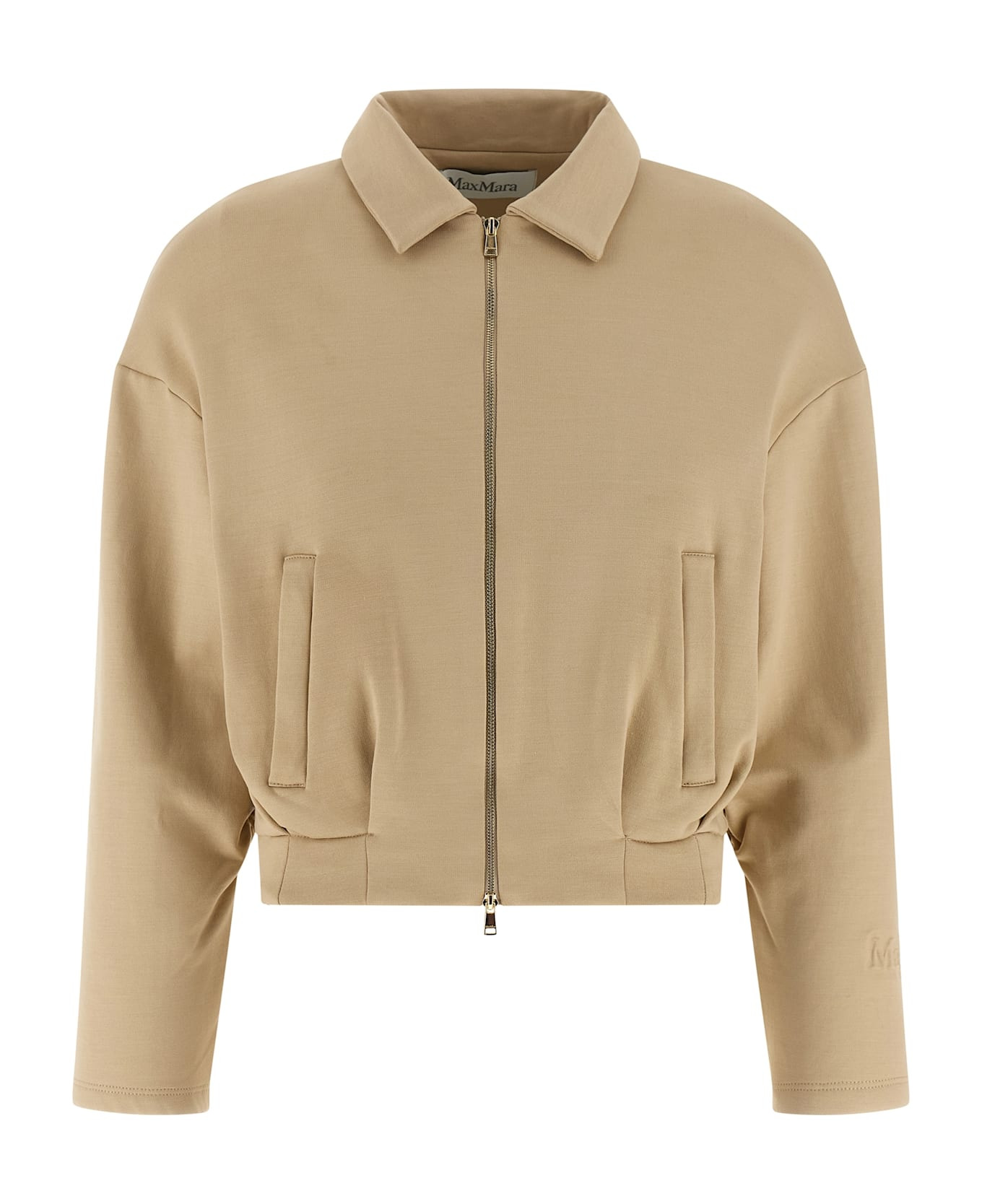 'Argenta' cropped sweatshirt in silk and cotton with front zip closure, shirt collar, pockets, long sleeves with 3D embossed logo and dropped shoulders, and pinch on the hem. Composition: 55% silk 43% cotton 2% elastane Made in: Tunisia Color: Beige Size and fit: - true to size fit Model number: 2521926018600003