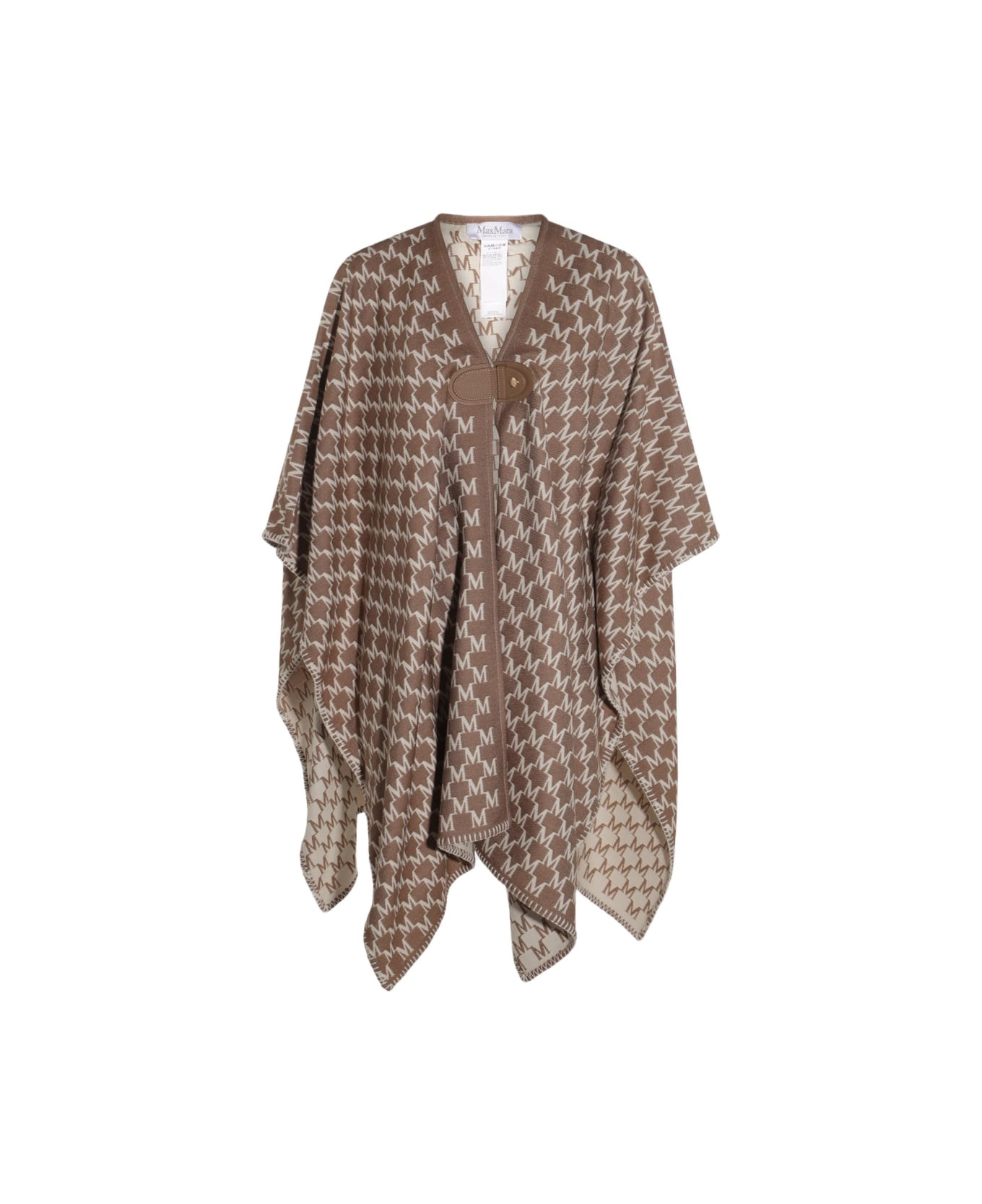 Beige wool scarves from Max Mara featuring frontal fastening, irregular hem and pattern. Composition: 76% Wo , 24% Cotton Made in: Italy Color: BIANCO/NOCE Model number: 252454611160002229001