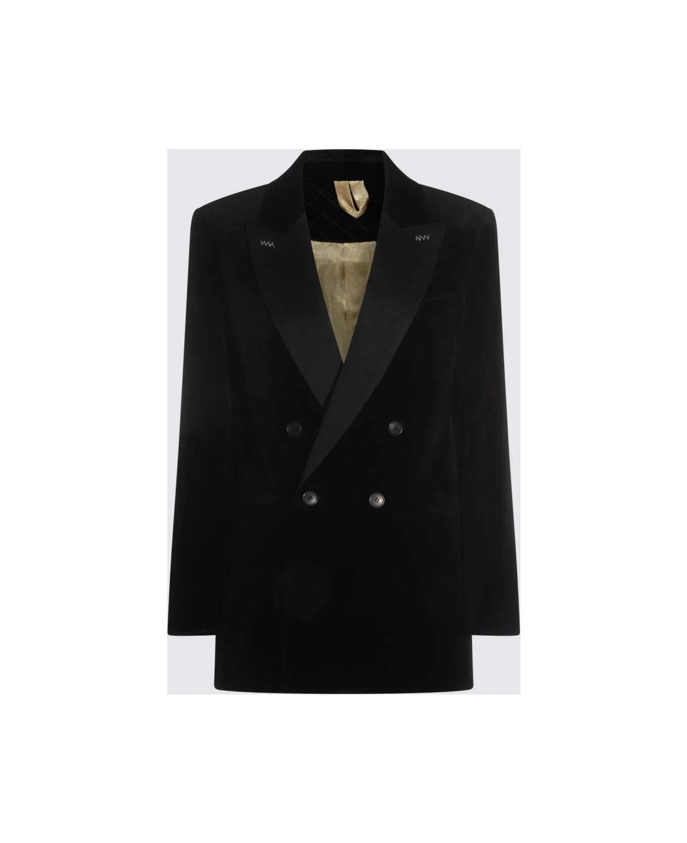 Black cotton Orario blazer from Max Mara featuring long sleeves, double breasted, pockets and regular vestibility. Composition: 98% Co, 02% Elastane Made in: Italy Color: Black Model number: 2521046181600007