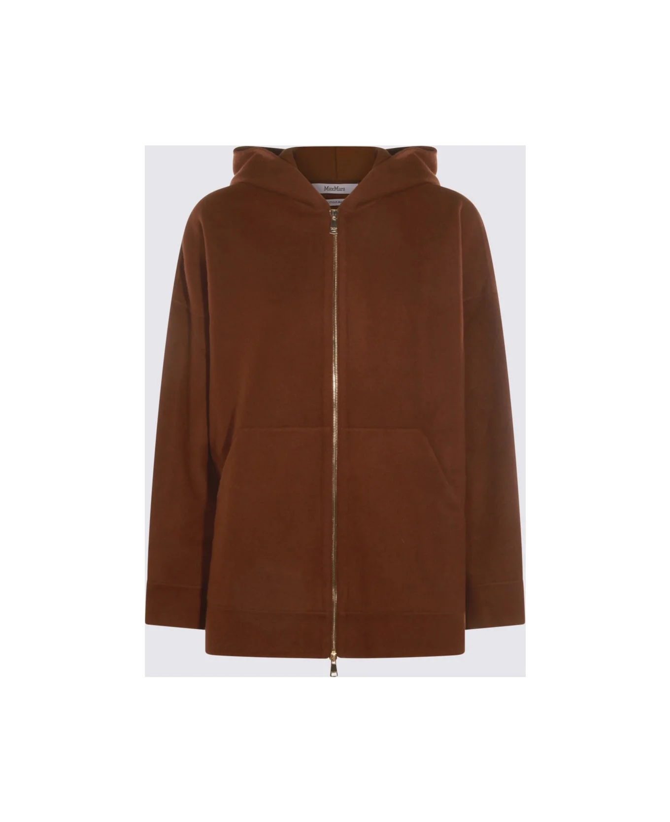 Brown wool Etuania sweatshirt from Max Mara featuring long sleeves, hood, zip fastening, pockets and regular vestibility. Composition: _, 85% Virgin Wool, 10% Cashmere, 5% Polyamide Made in: Italy Color: Cuoio Model number: 2521926012600003