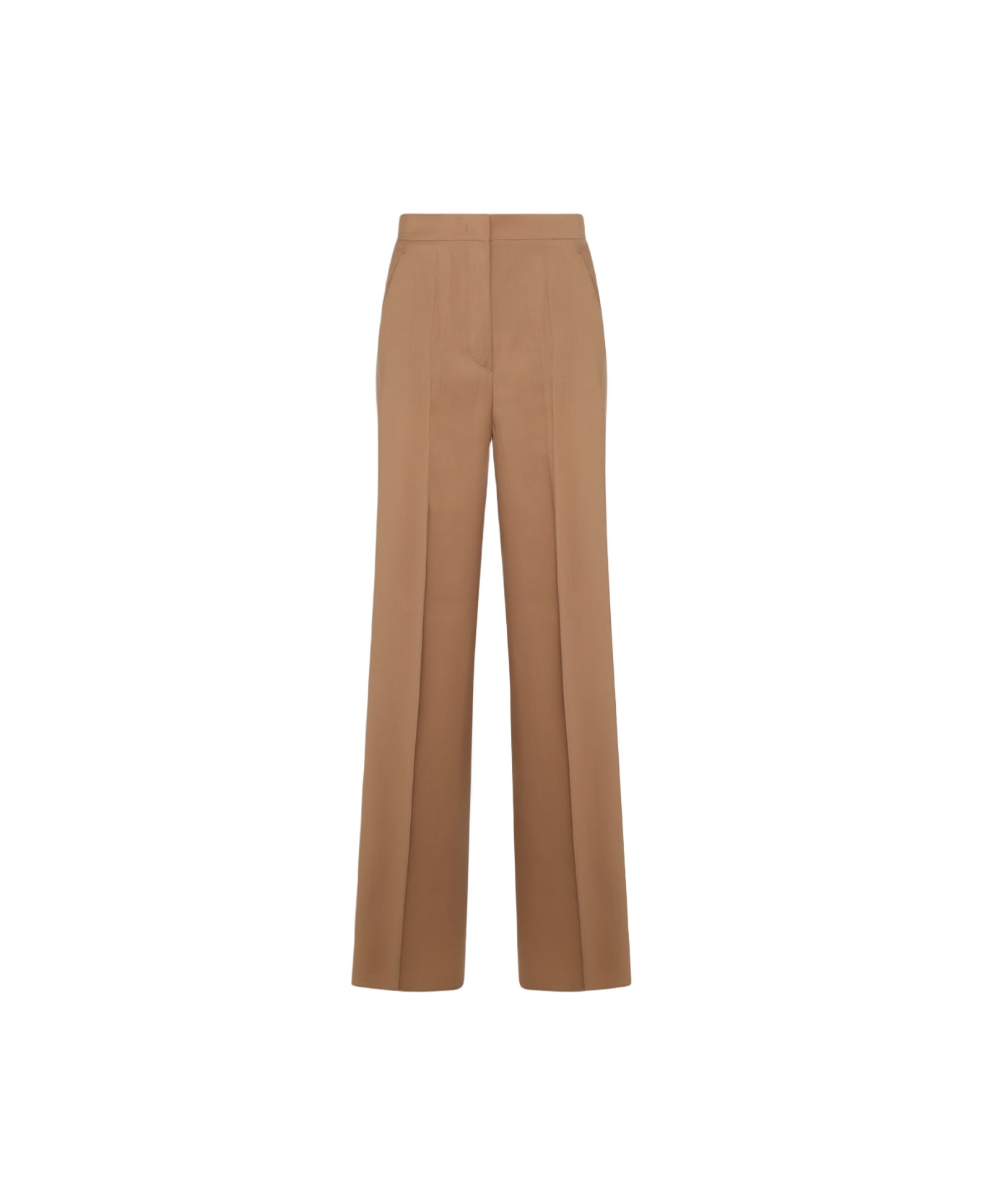 Brown wool pants from Max Mara featuring high waist, embroidered logo on the back, pleated details, frontal zip fastening and straight vestibility. Composition: 100% Virgin Wool Made in: Italy Color: Brown Model number: 252113612160010204010