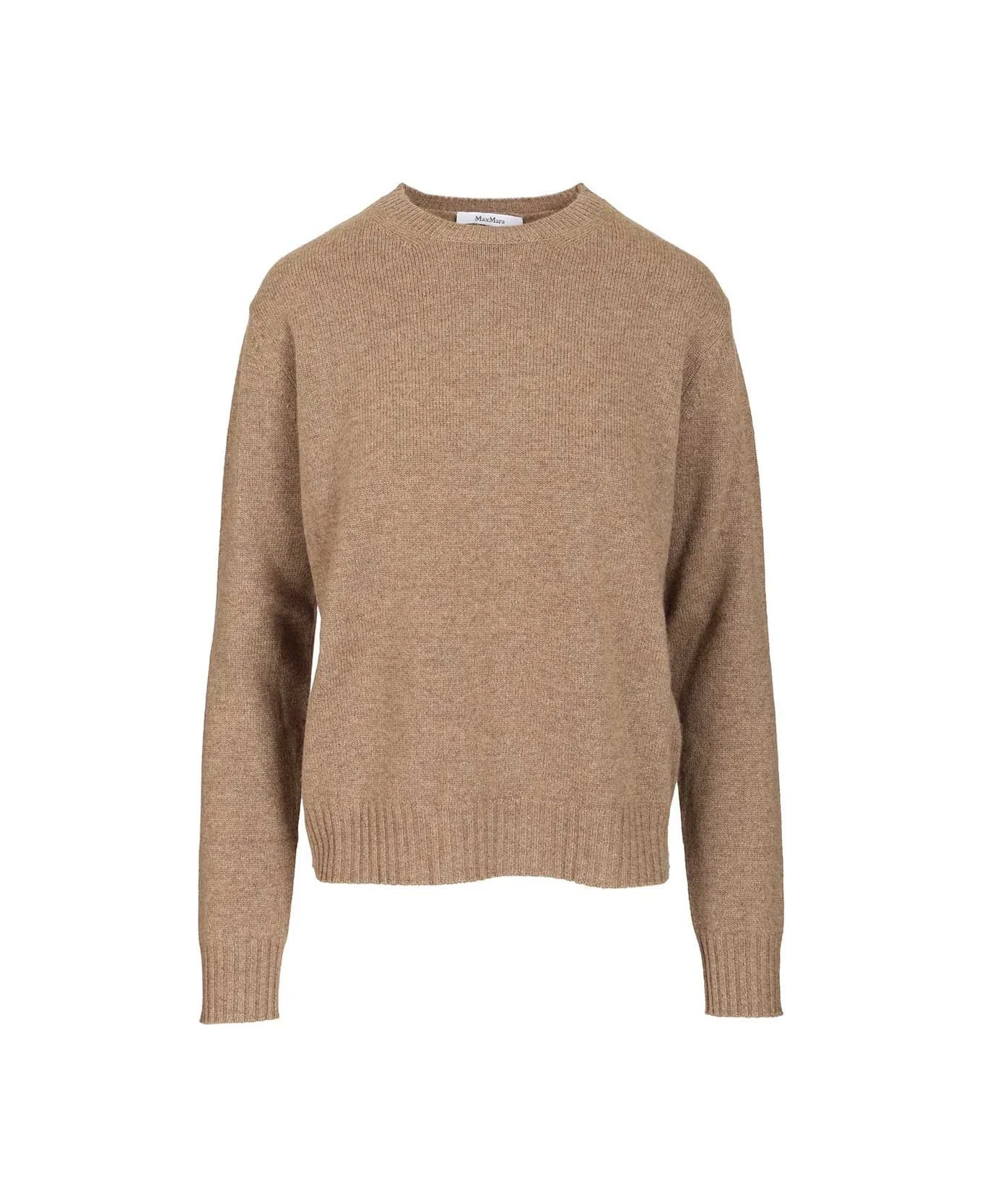Max Mara cashmere crewneck sweater, with ribbed crew neck, long sleeves with dropped shoulders, ribbed cuffs and hem, straight hem Composition: fabric 100% Cashmere Capra hircus hircus CINA Made in: China Color: BEIGE Model number: 2521366012600116001