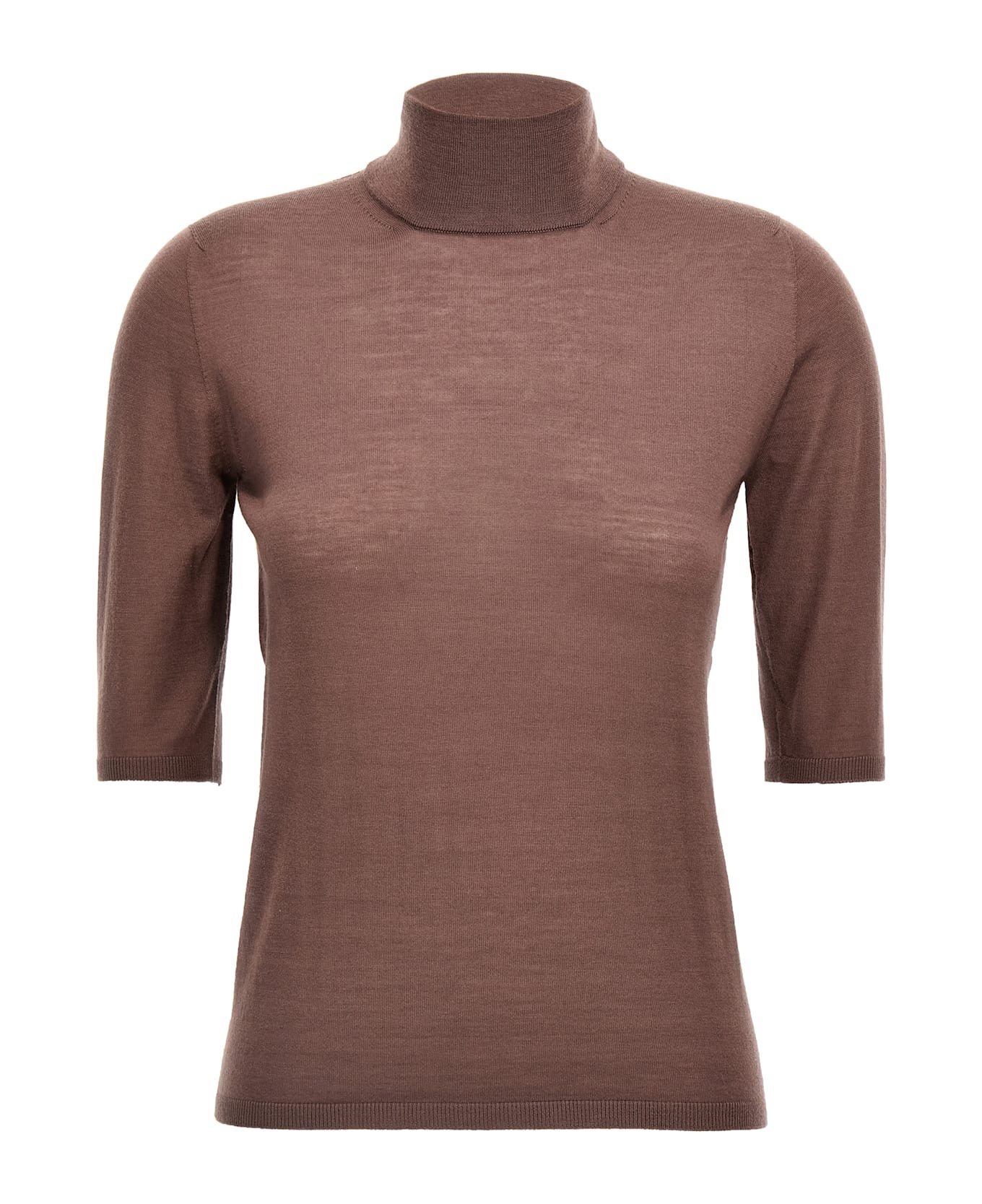 'Cecina' turtleneck in shaved wool yarn, high neck, 3/4 sleeves. Composition: 100% virgin wool Made in: Italy Color: Purple Size and fit: - true to size fit Model number: 2511361081600011