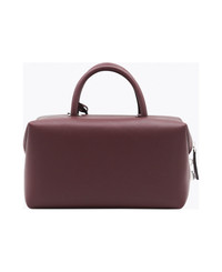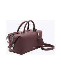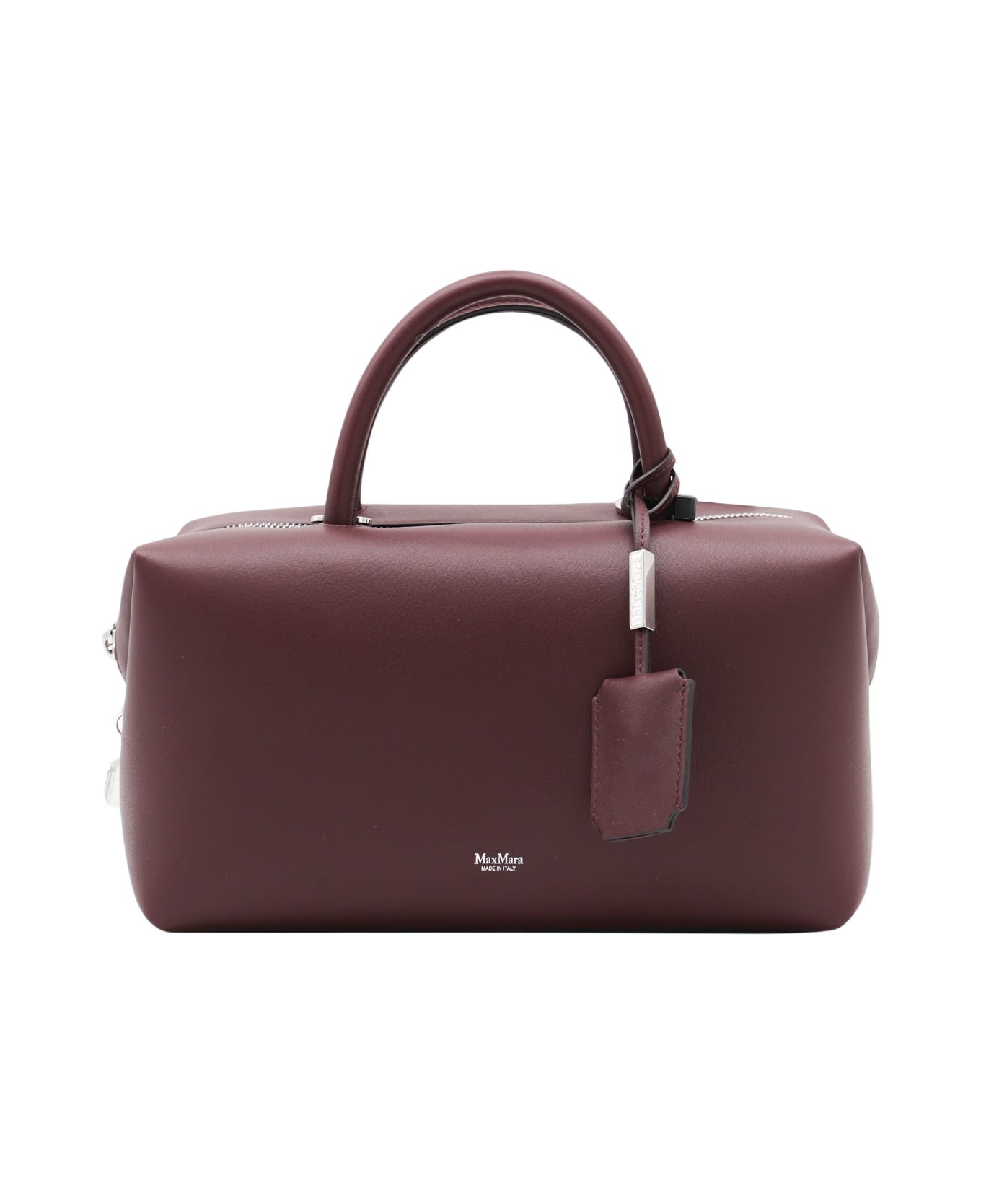 Dark red leather Holdallm top handle bag from Max Mara featuring double leather handles, embossed logo at front, silver tone metal hardware, zip closure, adjustable and detachable shoulder strap with main compartment. Composition: 100% Le Made in: Italy Color: Porto Size and fit: - WIDTH: 26 CM - HEIGHT: 15 CM - DEPTH: 13 CM Model number: 252451612160081177021