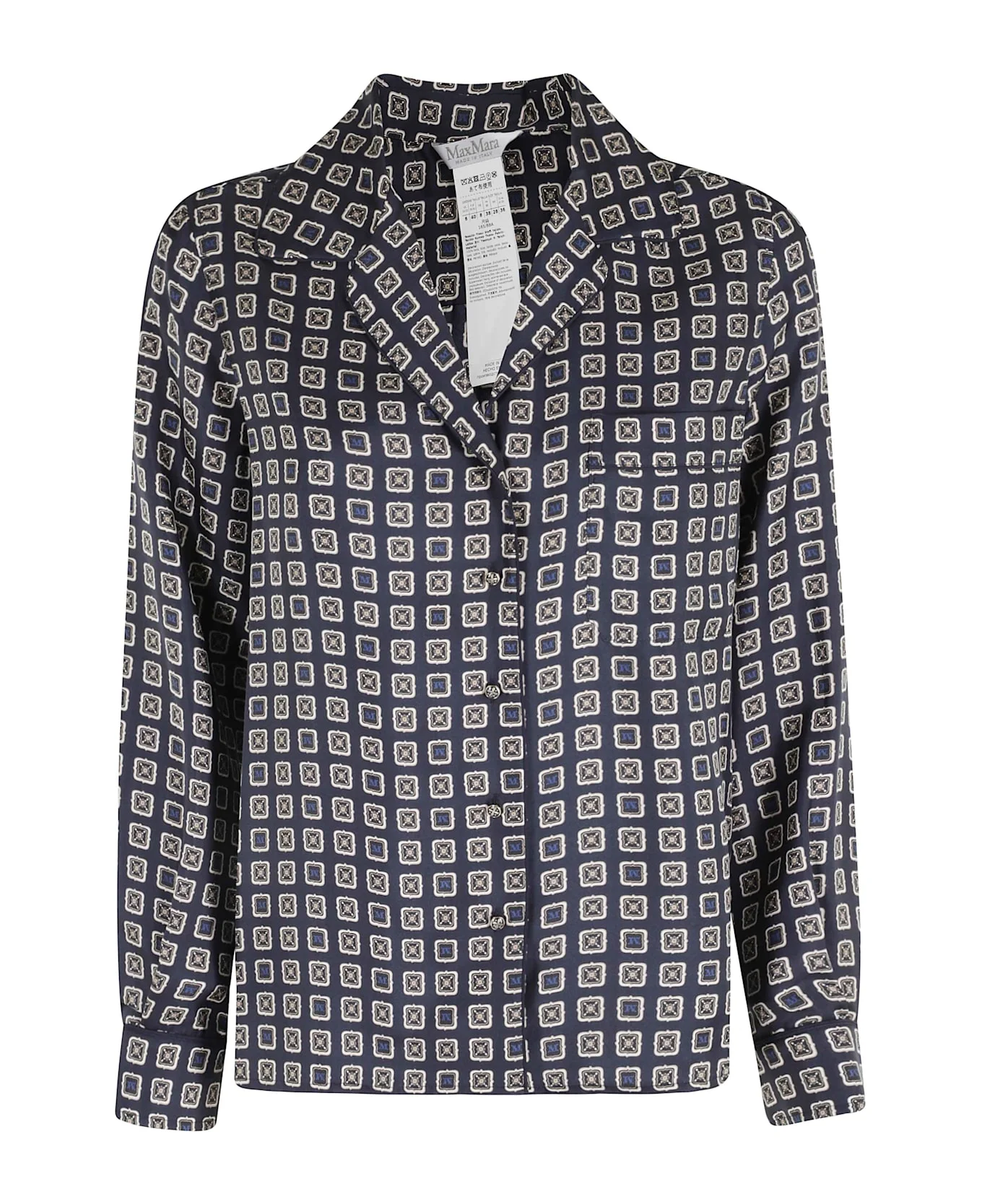 Category: Shirt Article: Disc Brand: Max Mara Color: Navy Blue Neckline: Navy Blue Neckline: Bowling collar open in front Details: Round sleeves with cuff and side button, front buttons, breast pocket, archival print E. Marinella all-over SIZE AND FIT Fit: Regular Fit Length: Straight Length: Long Sleeve Length: Long Made in: Italy Color: Blu Marino Model number: 2611111131600|098002