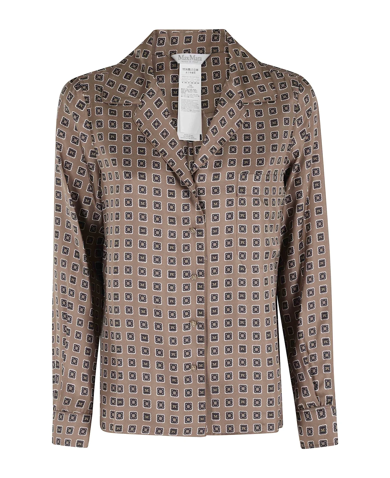 Category: Shirt Article: Disc Brand: Max Mara Color: Mud Neckline: Open bowling collar on the front Details: Round sleeves with cuff and side button, front buttons, breast pocket, archival print E. Marinella all-over SIZE AND FIT Fit: Regular Fit: Straigh Made in: Italy Color: Fango Model number: 2611111131600|098005