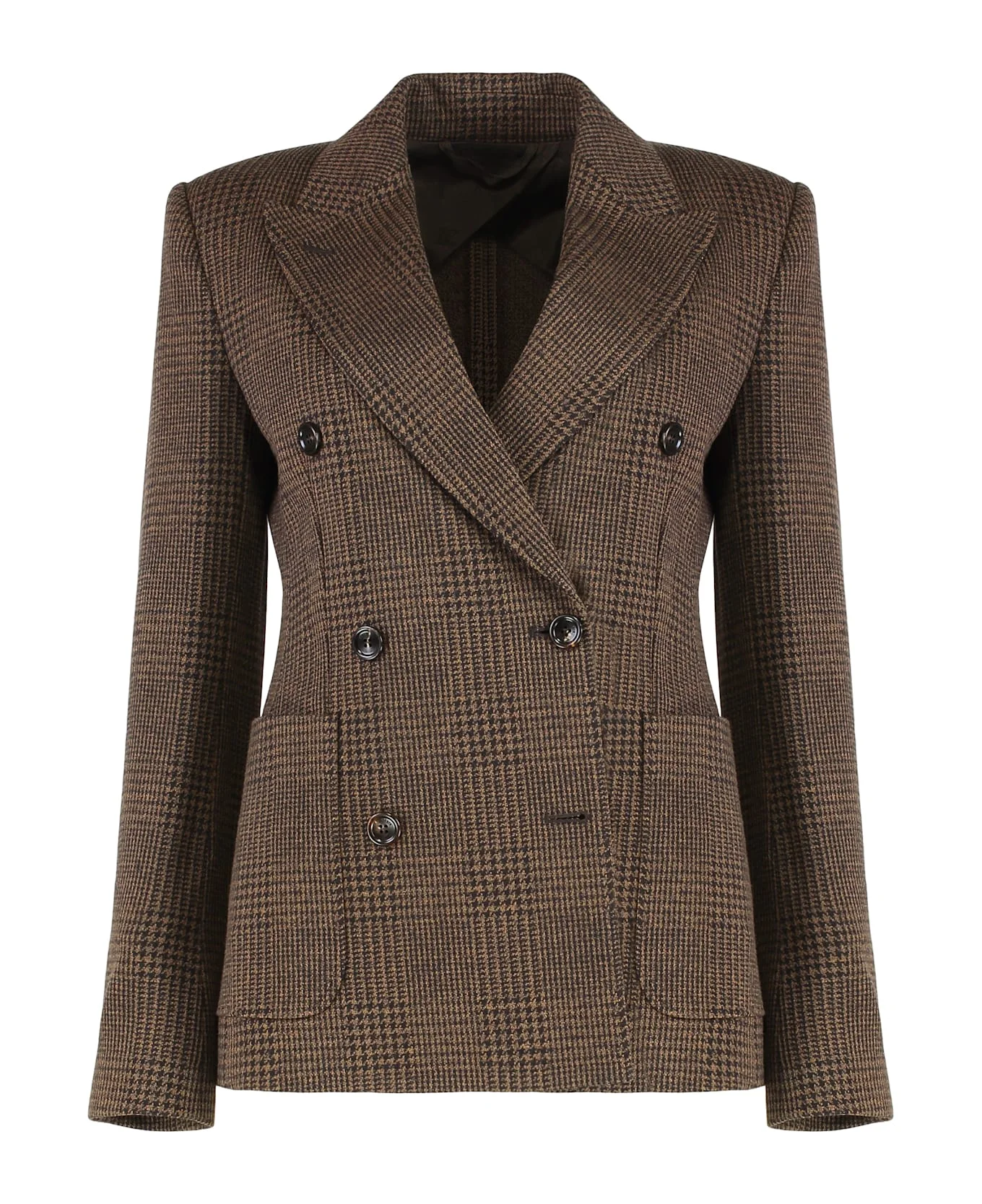 Double-breasted houndstooth cotton-blend blazer Brown