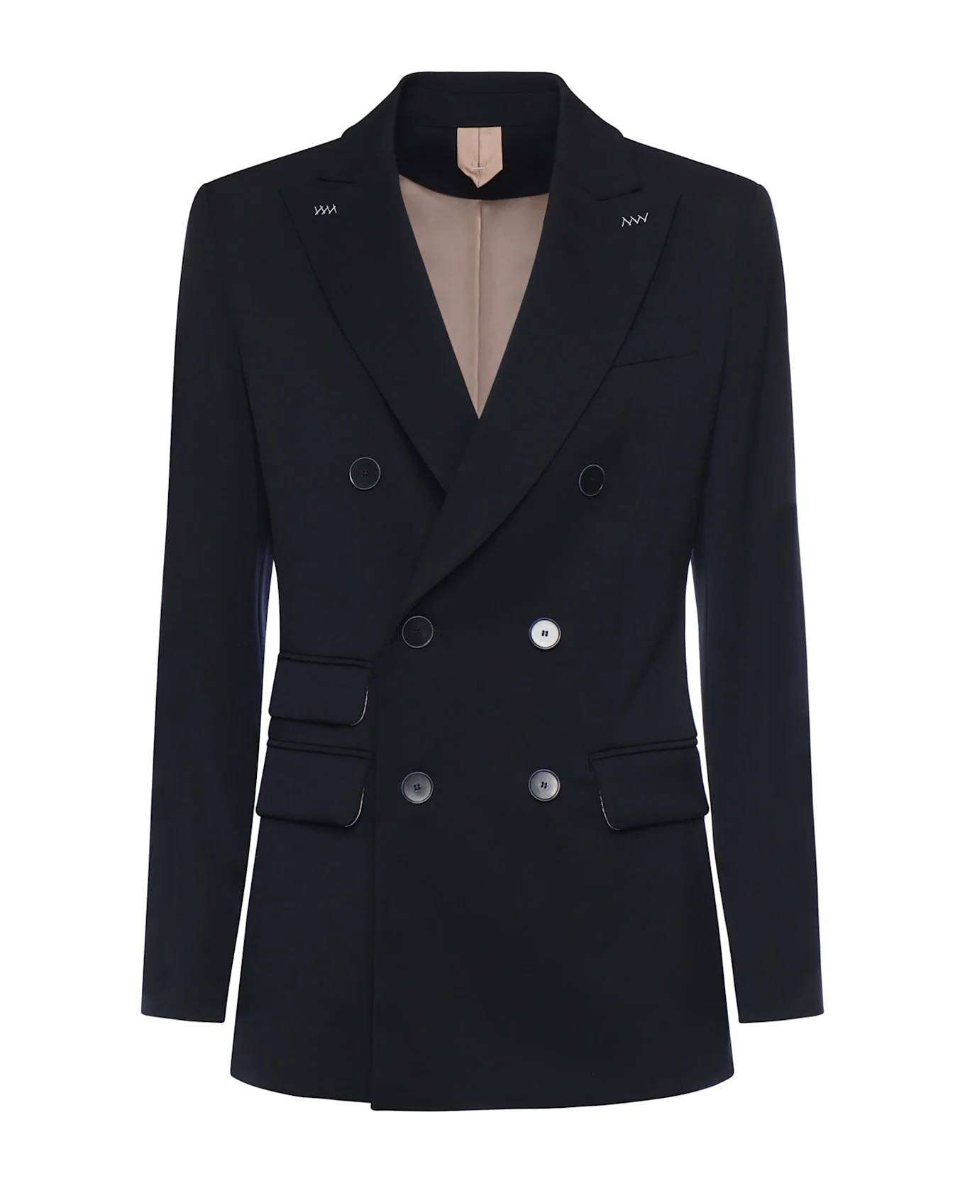 -Made of wool gabardine -Double-breasted -Patch pockets -Peak lapel -Made in Italy -Size shown is 40 -Color: Navy Blue Made in: Italy Color: Blue Model number: 2611041071600007