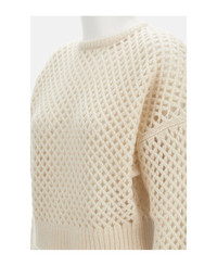 Long-sleeved perforated cashmere sweater with ribbed waistband and cuffs. Crew neck, oversized fit, white. Composition: 75% Cashmere, 25% Silk Made in: China Color: White Model number: 2521366142600001