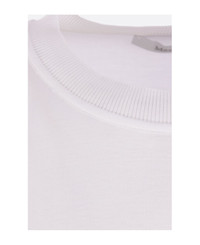 Max Mara t-shirt made of white cotton jersey with tone-on-tone embroidered logo lettering on the left sleeve. Featuring a crew neckline, short sleeves, and a straight hem, slightly longer at the back with small side slits. Composition: 100% cotton Made in: Romania Color: WHITE Size and fit: - Boxy fit Model number: 2511941019600072001