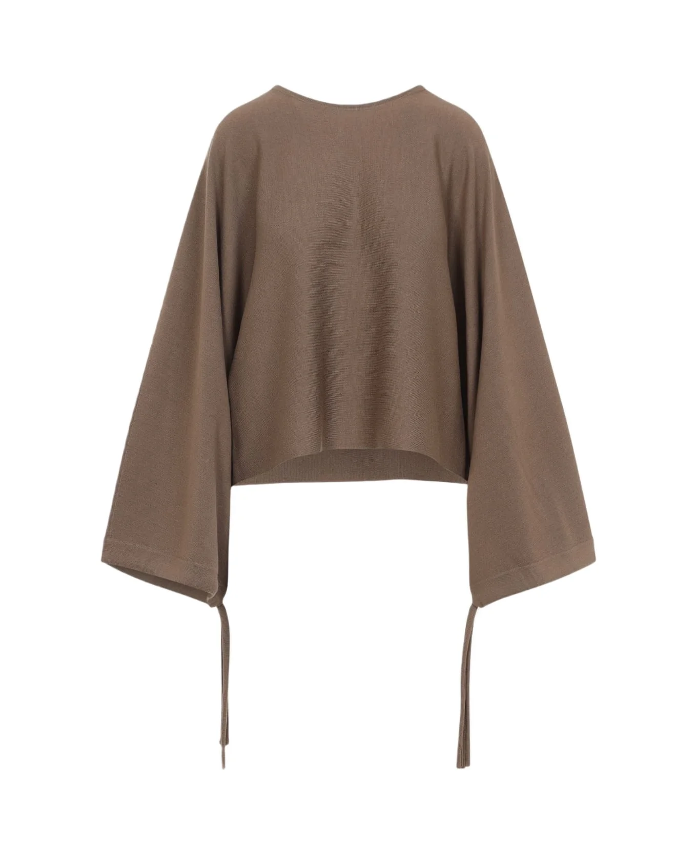 Max Mara Frais Balloon Brown Virgin Wool Pullover. Crafted from brown virgin wool yarn, round neckline, mini-branded label at the back of the collar, wide sleeves, drawstring at the cuffs, relaxed fit. Made in: Italy Color: Noce Model number: 252136610160012022004