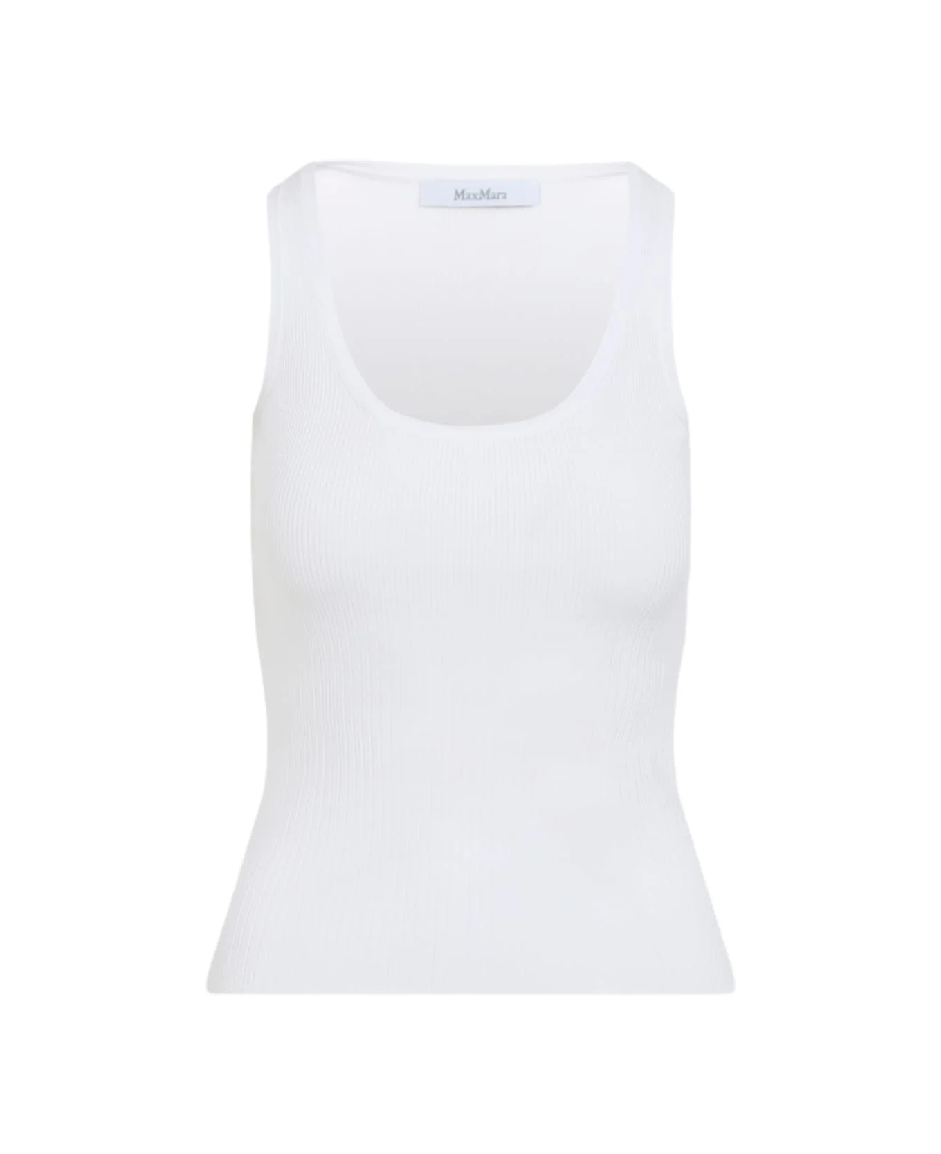 Max Mara White Ghiro Knit Tank Top. Crafted in viscose and polyester blend. Round toe, tank top design, sleeveless, straight hem, ribbed all-over. Made in: Italy Color: Bianco Model number: 2611361032600001