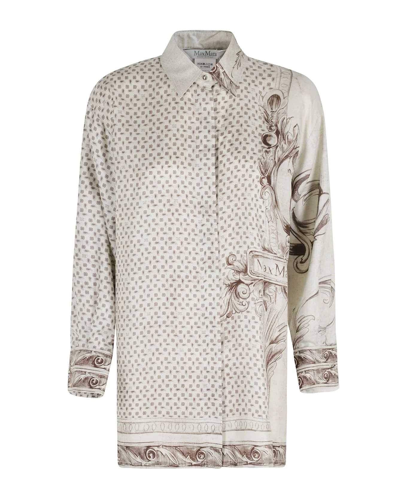 Category: Shirt Item: Grade Brand: Max Mara Color: Ivory Neckline: Classic collar Details: Sleeves with dropped shoulder, high cuff to twin, all-over print, side slits squared Closure: Concealed front SIZE & FIT Fit: Regular Fit Line: Straight Length: Long Sleeve Length: Long Made in: European Union Color: Avorio Model number: 2611191011600|098001