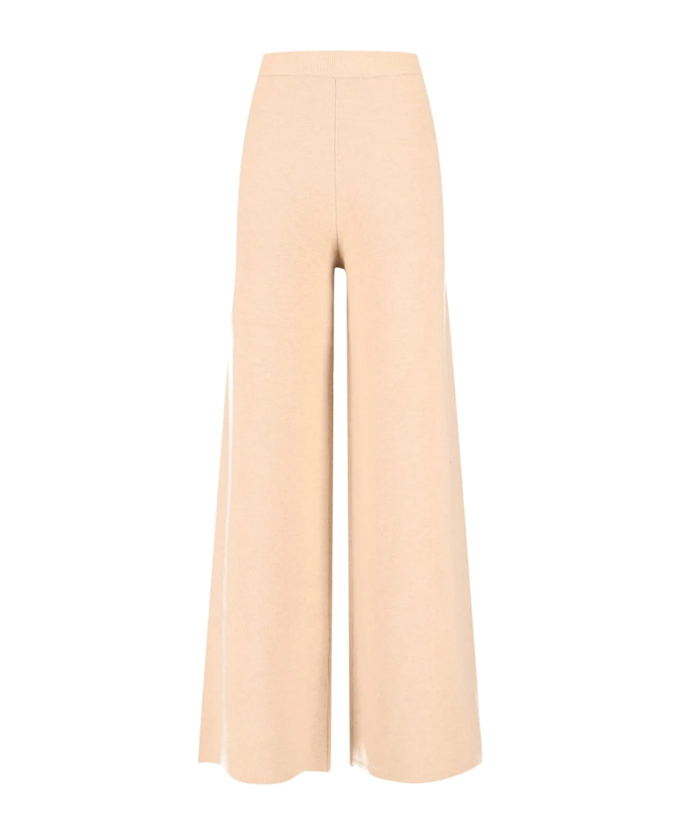 Max Mara beige wool and cashmere blend track pants with elastic waistband, ribbed trim, logo label detail on the back, wide leg. Composition: 70% Wool, 30% Cashmere Made in: China Color: Orzo Melange Size and fit: - Vestibilita regolare Model number: 2521336012600006