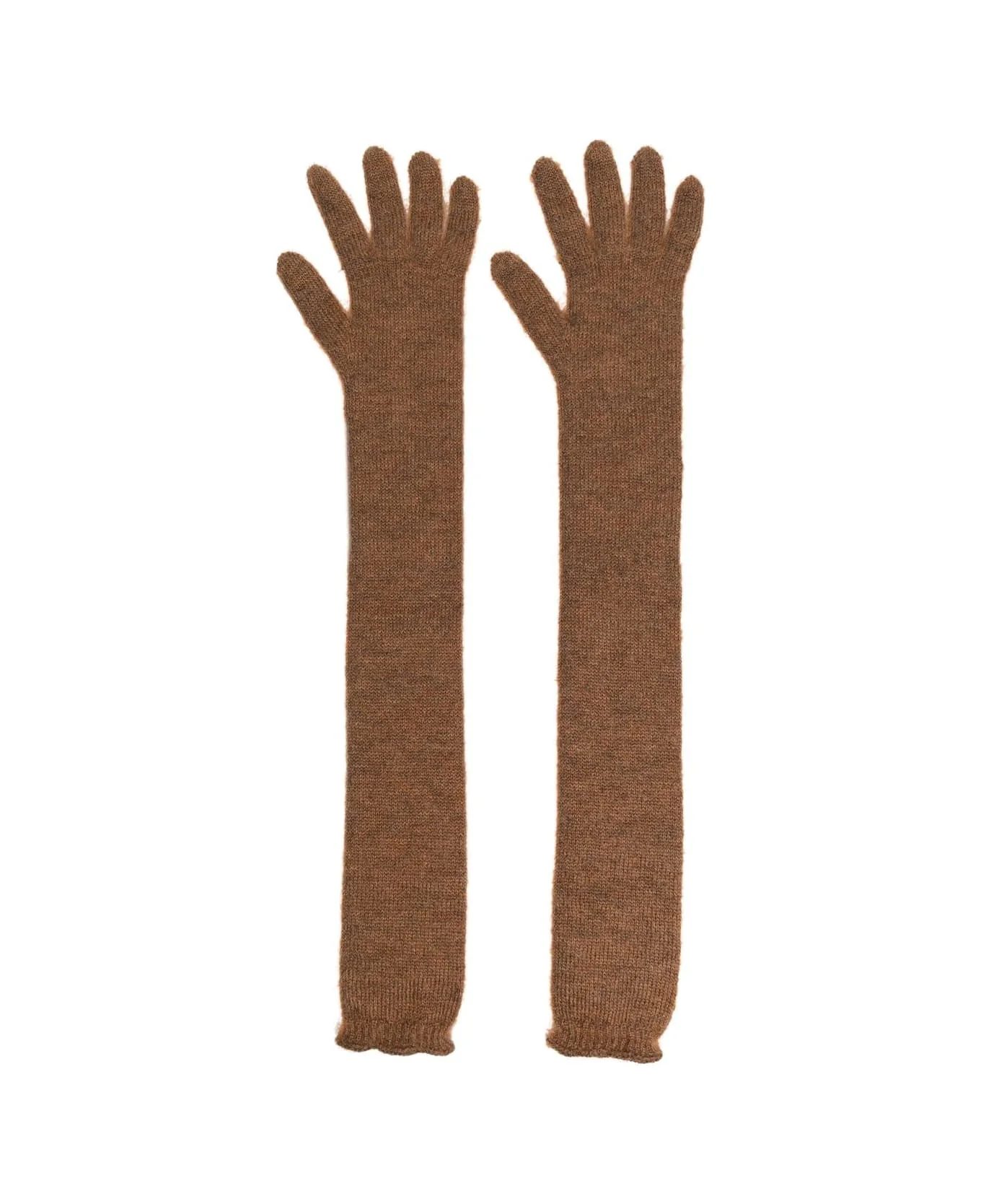 fine-knit long gloves from Max Mara (VIP) featuring mohair-wool blend, fine knit, full-finger design, long length, pull-on style and luggage brown. Composition: Wool Or Fine Animal Hair->mohair, 61% Synthetic->polyamide, 31% Wool Or Fine Animal Hair->wool, 8% Made in: Italy Color: Leather Brown Model number: 45660324600POLDER006