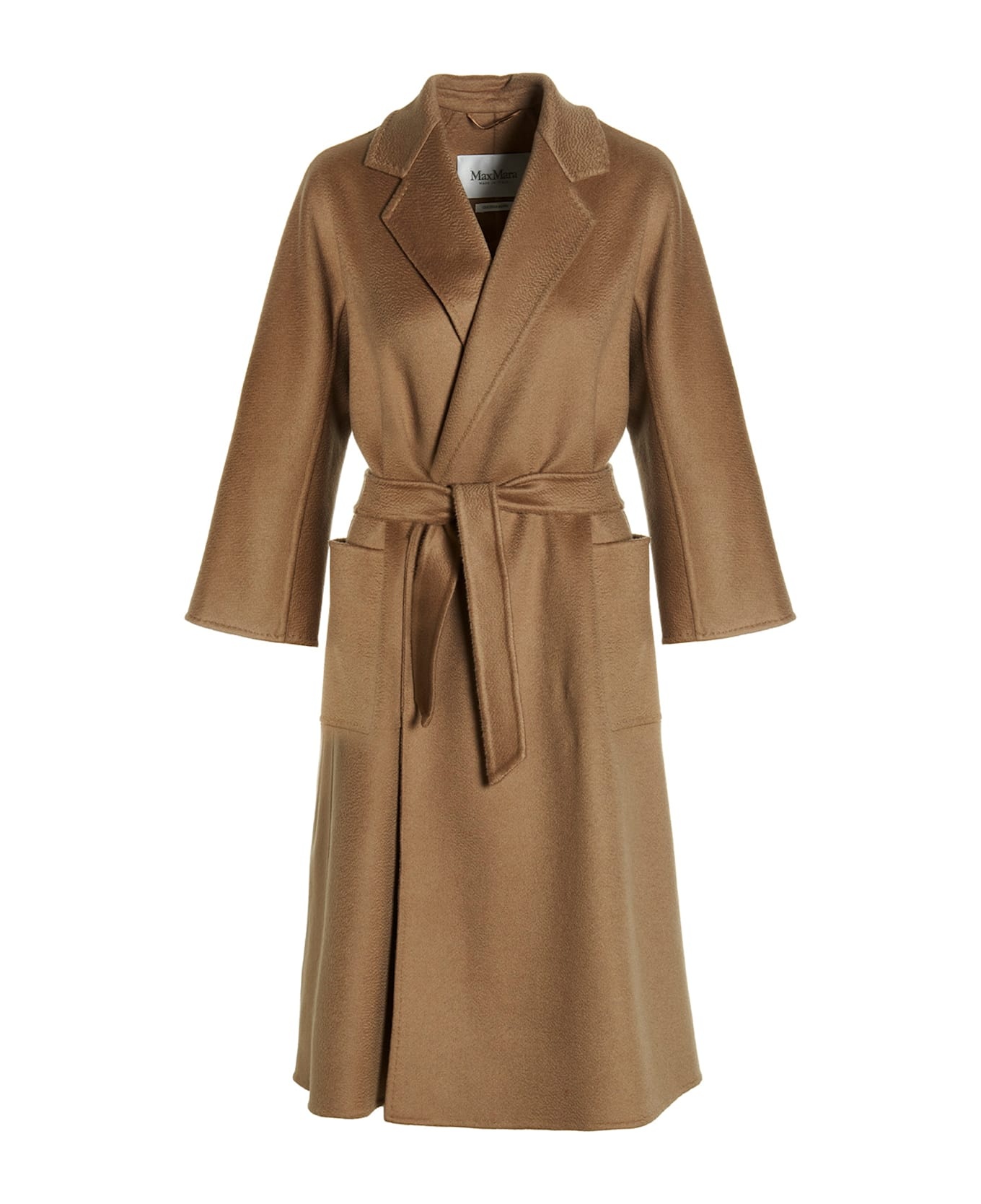 Ludmilla Icon' pure cachemire ziflinate coat with kimono sleeves, patch pockets, lapel collar and a coordinated belt. Composition: 100% cachemire Made in: Italy Color: Beige Size and fit: - True to size fit Model number: LUDMILLA068