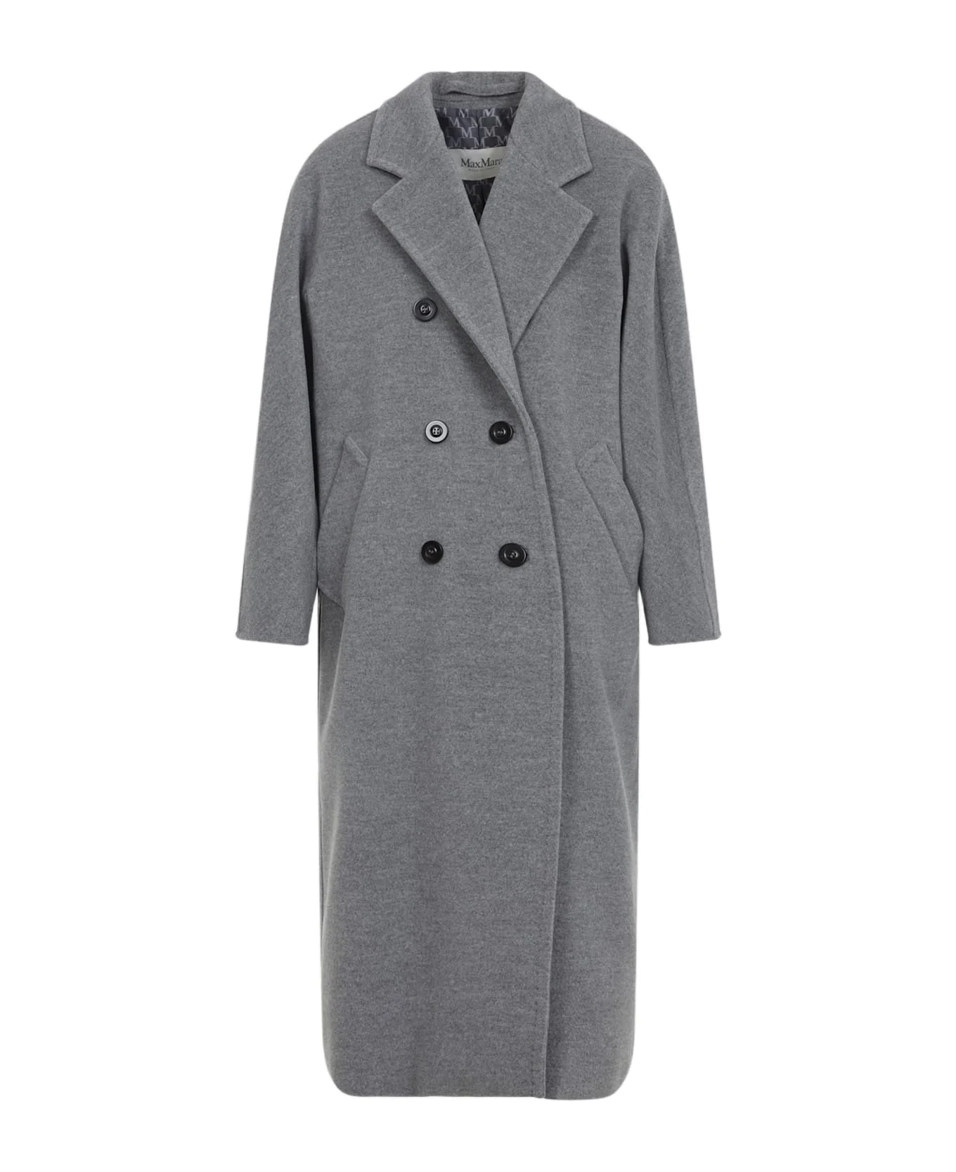 Max Mara Madame Grey Virgin Wool Coat. Crafted from melange grey virgin wool and cashmere, featuring notched lapels, a double-breasted construction with horn-button fastening, two front welt pockets, a detachable self-tie tonal belt, a branded lining, and an oversize fit. Made in: Italy Color: Grigio Chiaro Model number: 2611018011600018