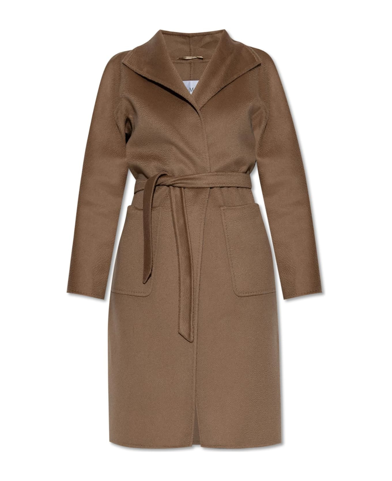 Discover refined sophistication with the Lilia cashmere coat by Max Mara. Impeccably tailored in a timeless shade of rich brown, this coat embodies understated elegance. The classic knee-length silhouette, softly structured shoulders, and understated lines create a fluid, graceful drape. A broad, shawl-inspired collar frames the neckline, imparting an air of modern opulence. Meticulously crafted from pure, sumptuous cashmere, this coat delivers exceptional warmth, remarkable softness, and a weightless feel. Its minimalist design is accentuated with two prominent patch pockets and a refined waist-defining belt crafted from the matching luxurious fabric. With no visible buttons, the closure remains discreet for a clean, contemporary look. Why choose this product? Exquisite pure cashmere for unparalleled luxury and comfort Elegant, versatile silhouette suitable for any occasion Tasteful details such as statement collar and large patch pockets Signature Italian craftsmanship by the renowned Max Mara fashion house Timeless minimalist design that endures beyond seasons Composition: 100% Cashmere 100% Cashmere 100% Cashmere Made in: Italy Color: Brown Model number: 2521016061600883068