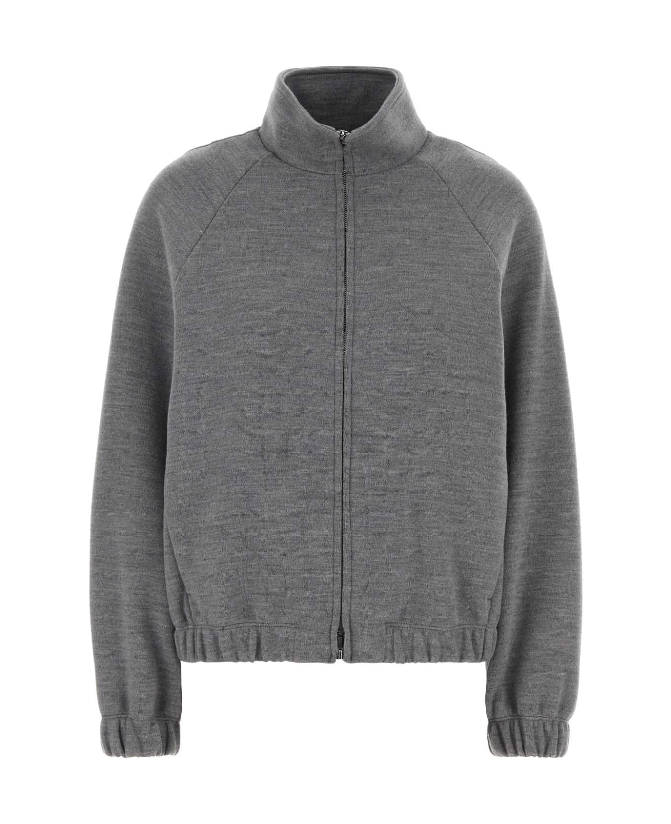 Melange Grey Wool Blend Frine Oversize Sweatshirt